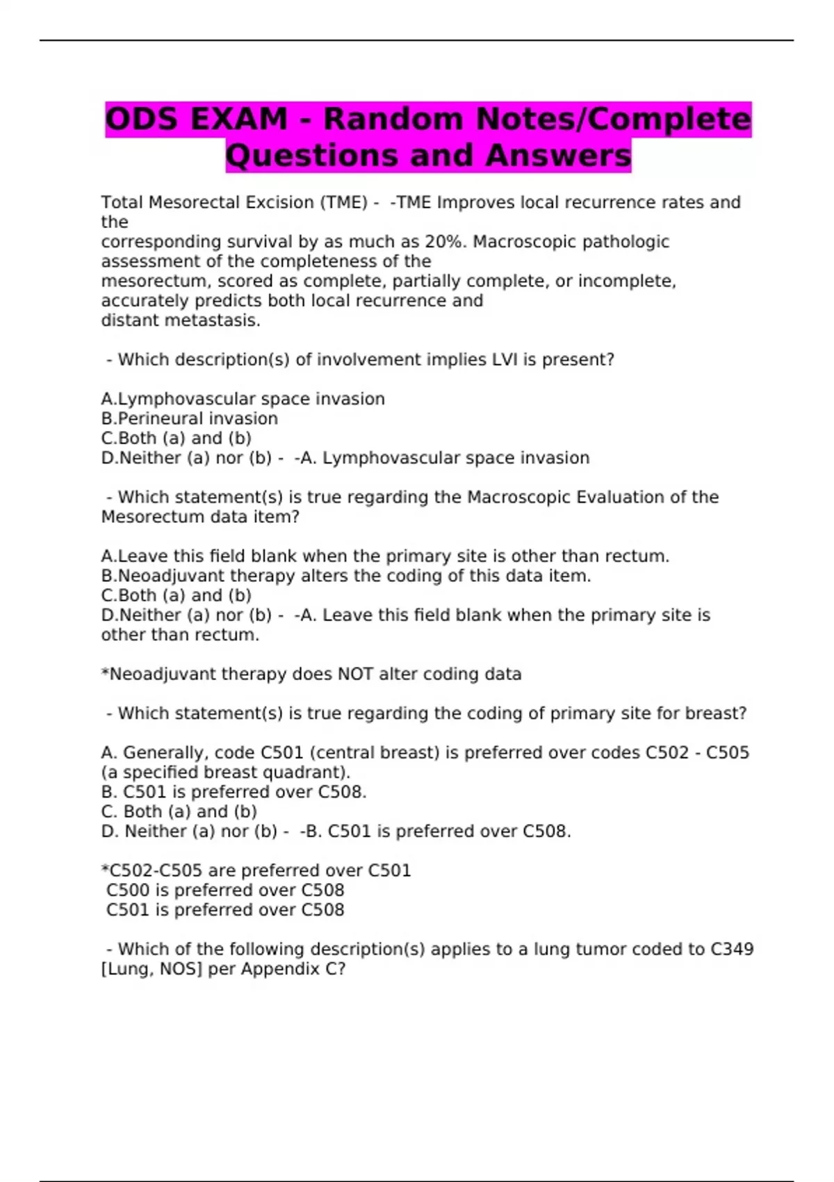 ODS EXAM - Random Notes/Complete Questions and Answers