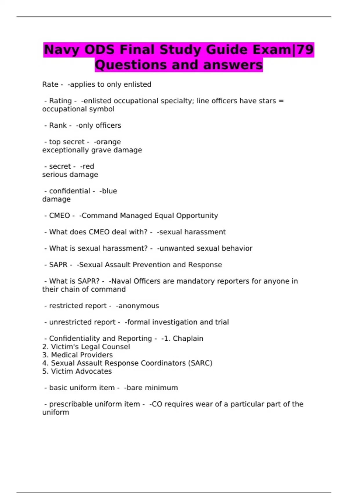 Navy ODS Final Study Guide Exam|79