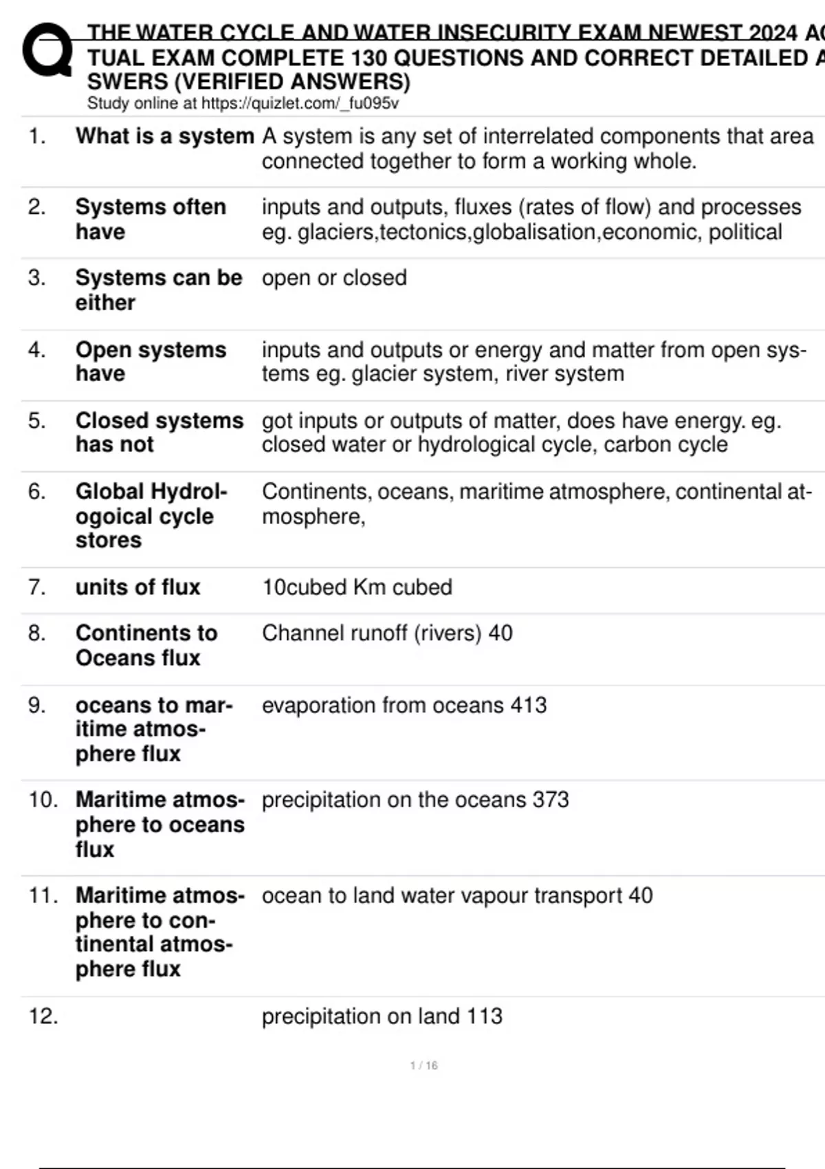 THE WATER CYCLE AND WATER INSECURITY EXAM NEWEST 2024 AC