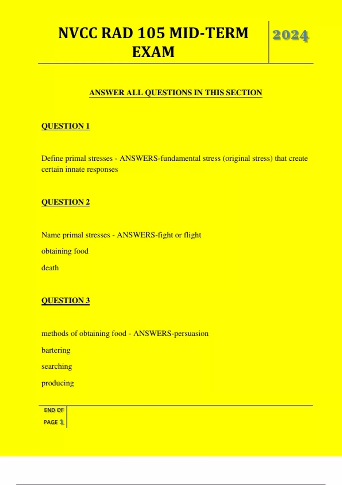 NVCC RAD 105 MID-TERM EXAM QUESTIONS AND ANSWERS 2024