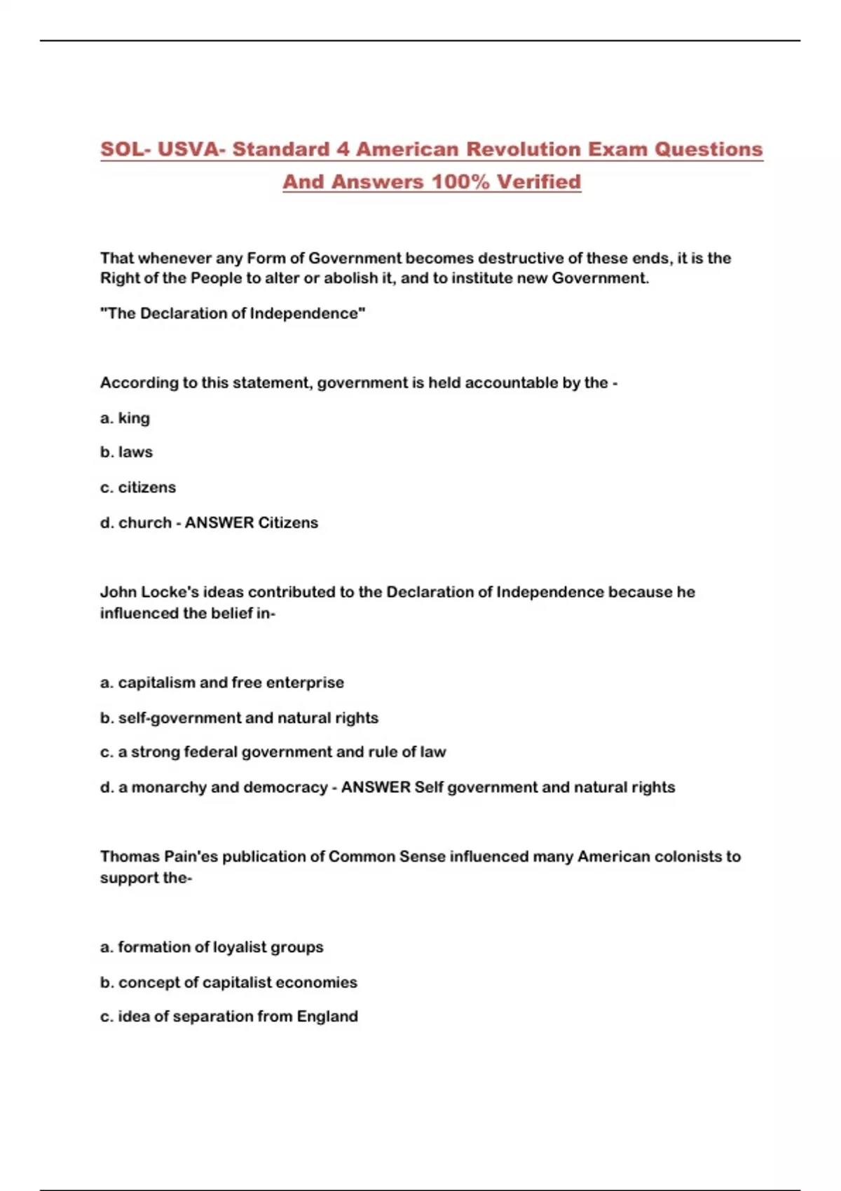SOL- USVA- Standard 4 American Revolution Exam Questions