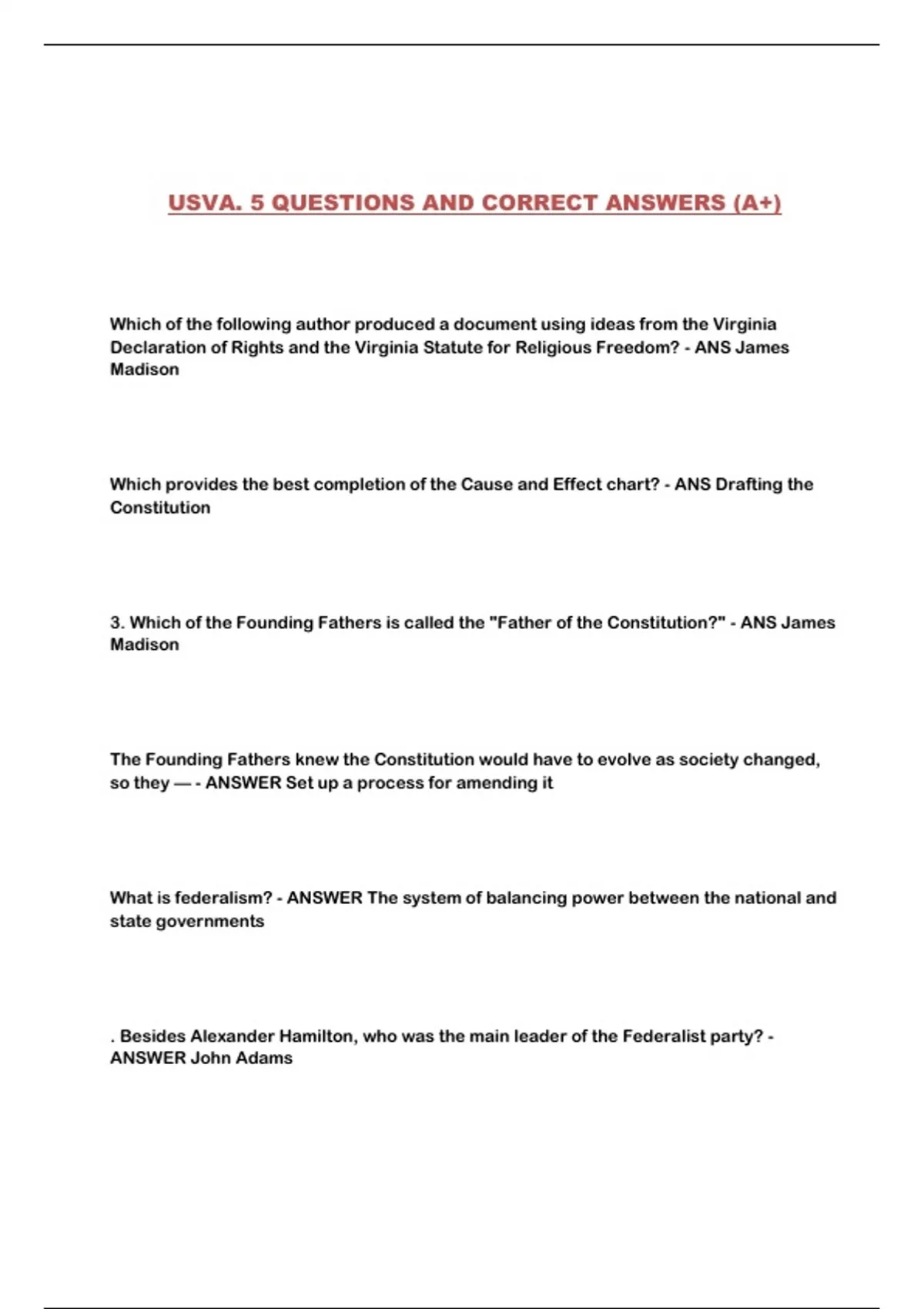 USVA. 5 QUESTIONS AND CORRECT ANSWERS (A+)