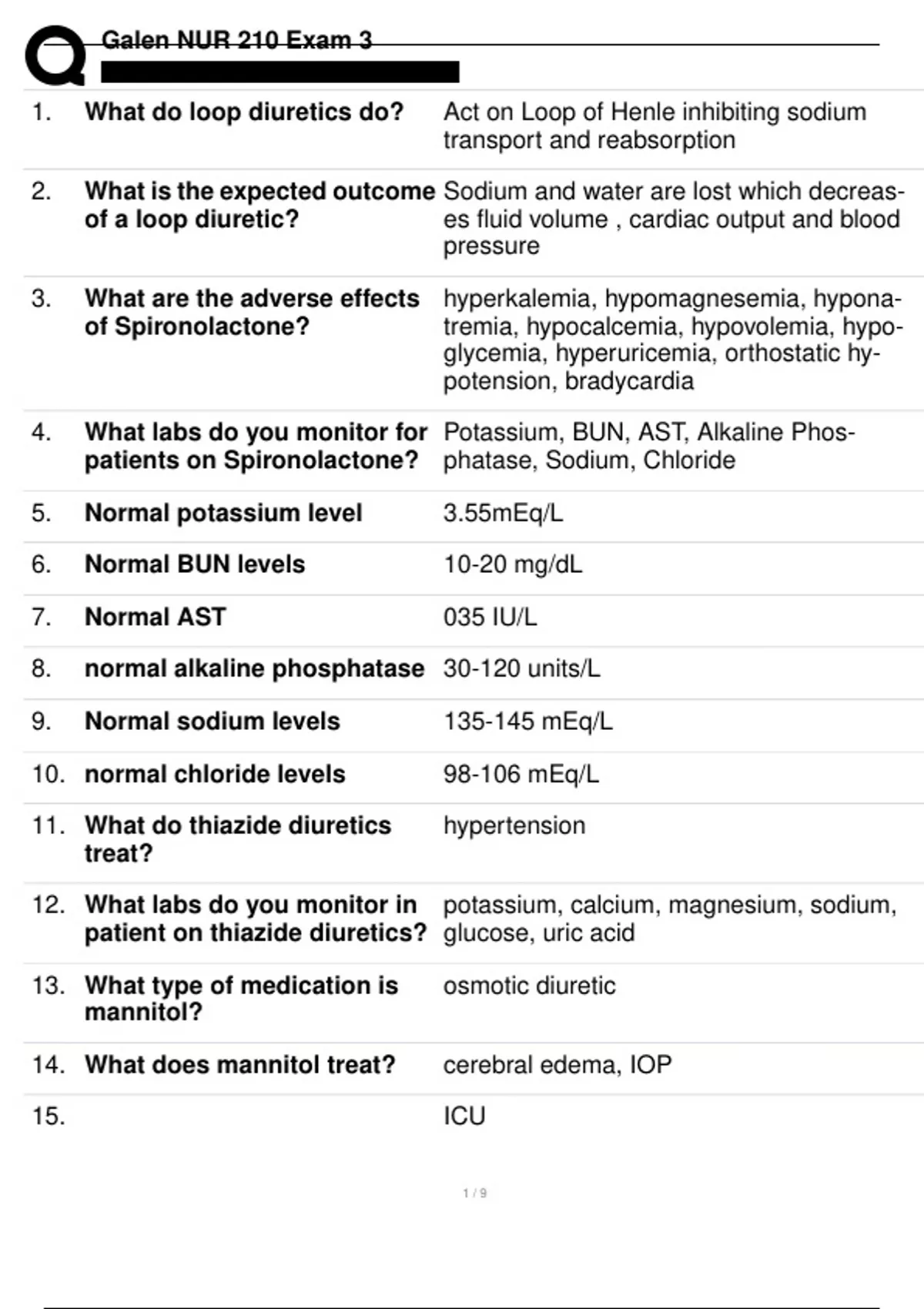 1. What do loop diuretics do? Act on Loop of Henle inhibiting sodium