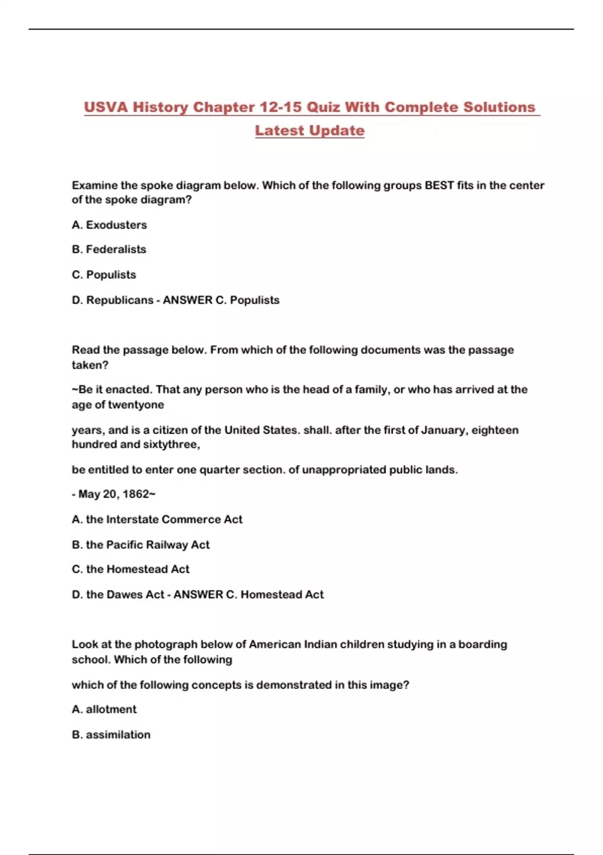 USVA History Chapter 12-15 Quiz With Complete Solutions