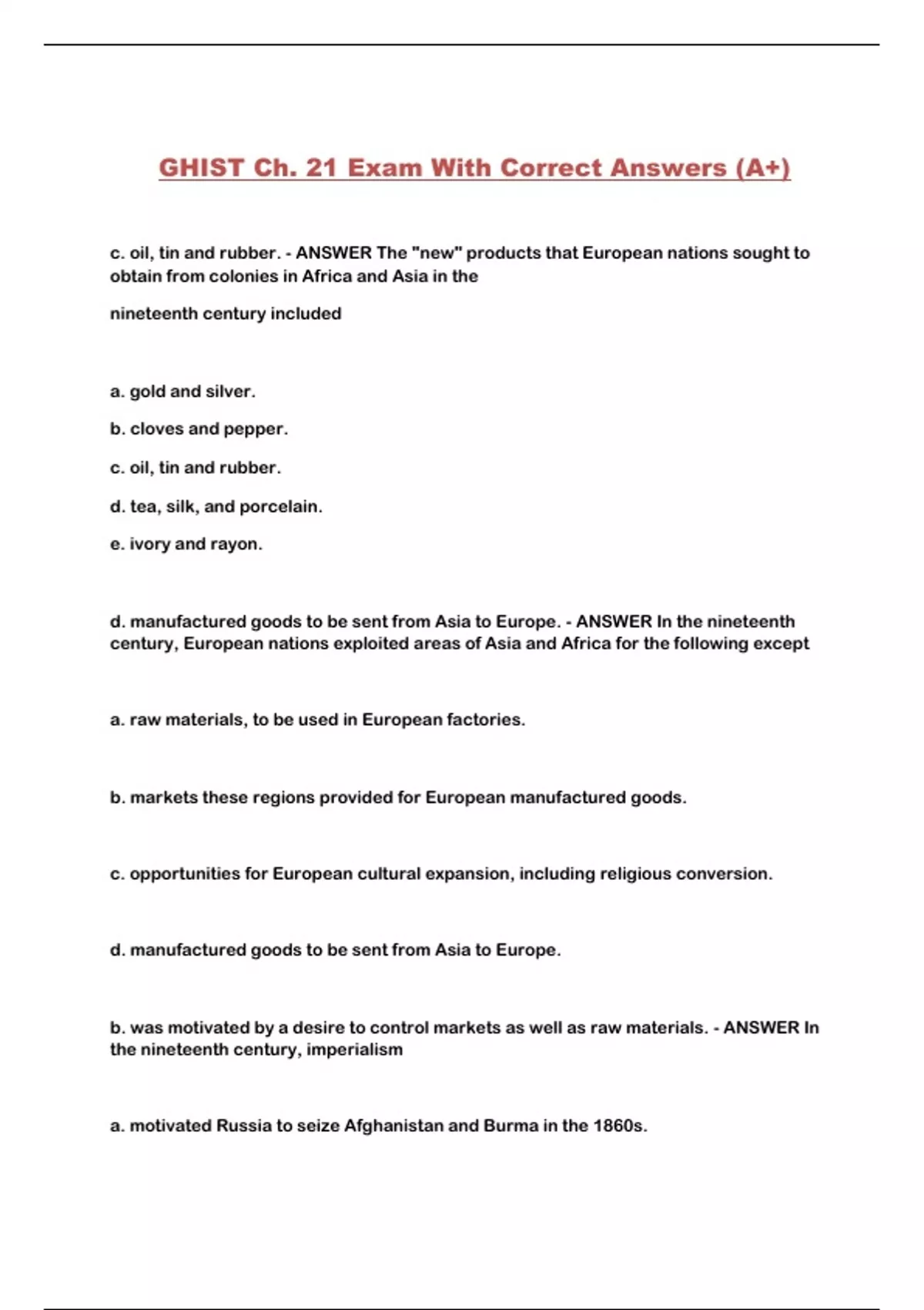 GHIST Ch. 21 Exam With Correct Answers (A+)