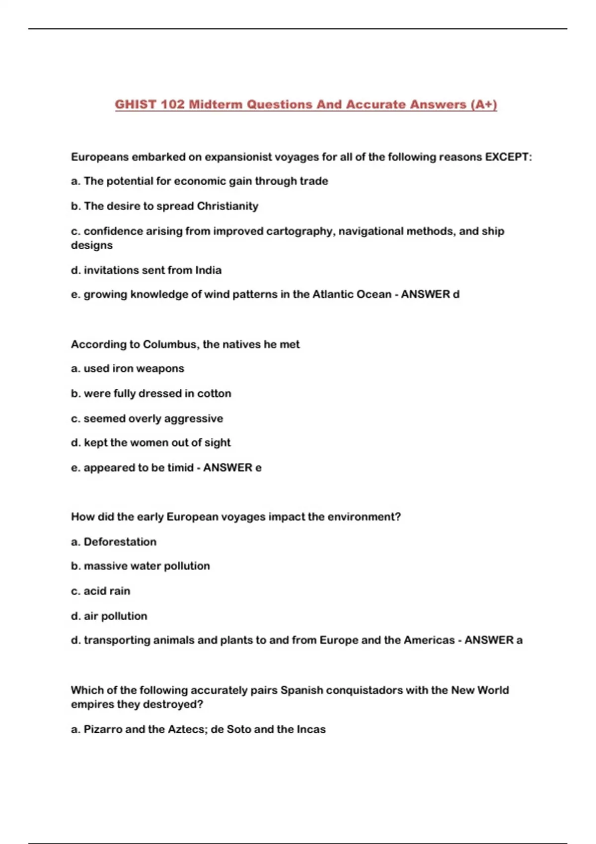 GHIST 102 Midterm Questions And Accurate Answers (A+)