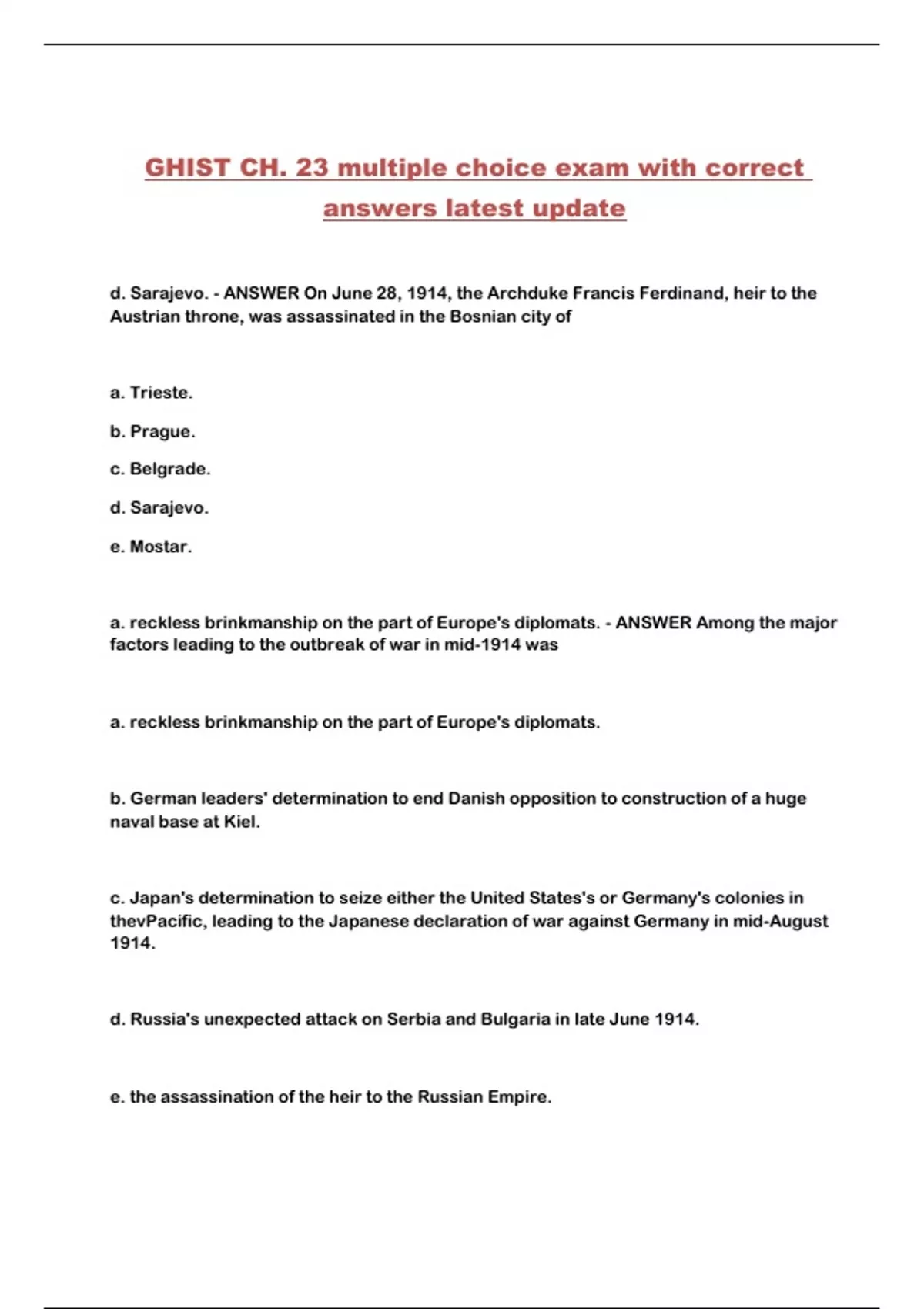 GHIST CH. 23 multiple choice exam with correct