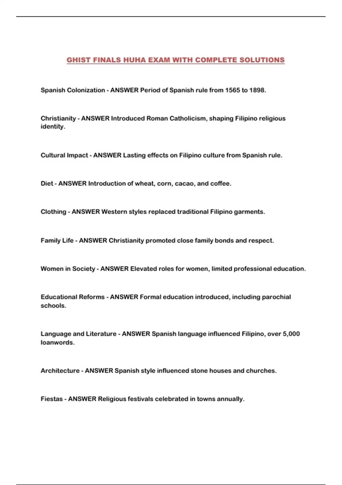 Cultural Impact - ANSWER Lasting effects on Filipino culture from Spanish rule.