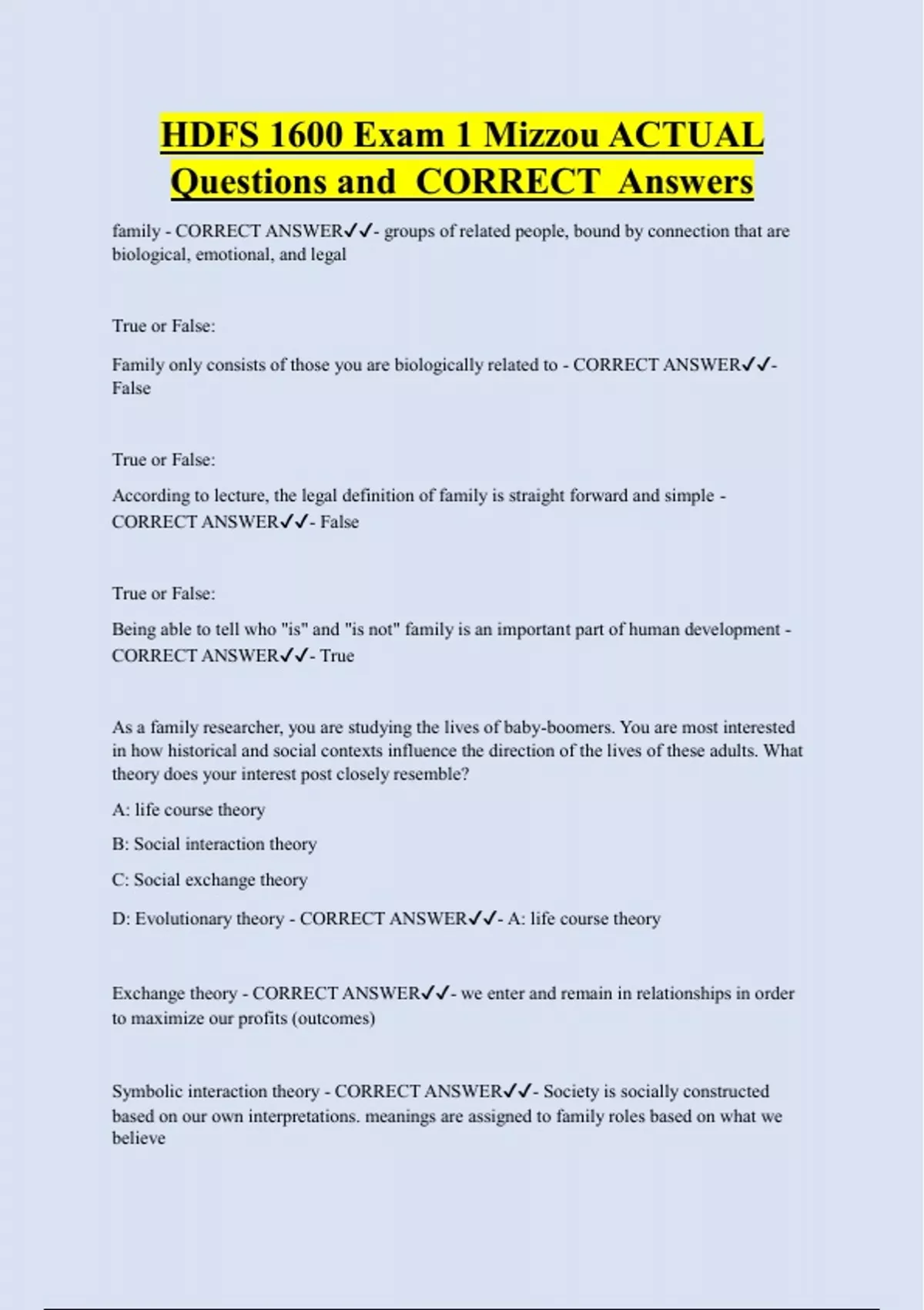 D: Evolutionary theory - CORRECT ANSWER✔✔- A: life course theory