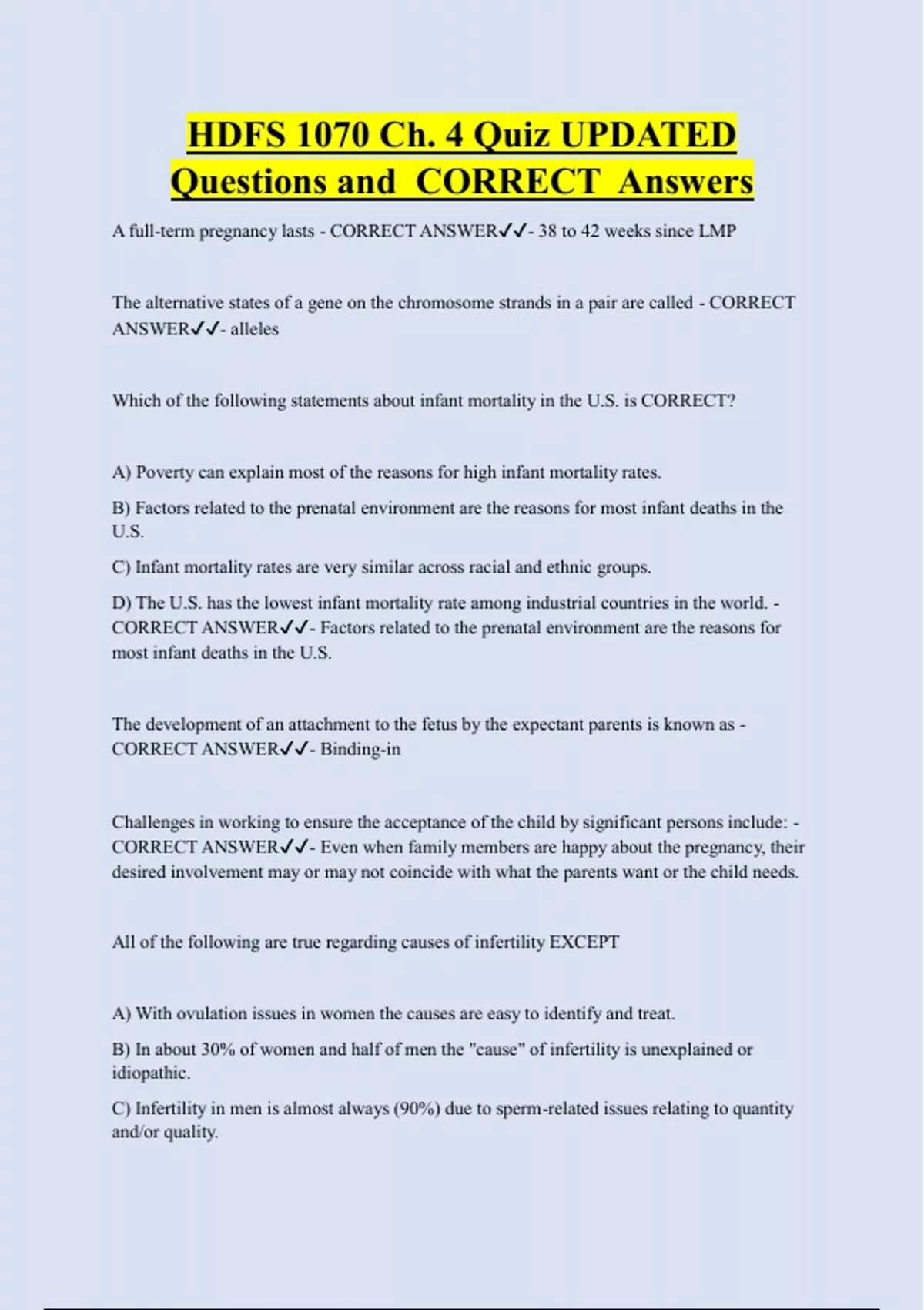 Questions and CORRECT Answers