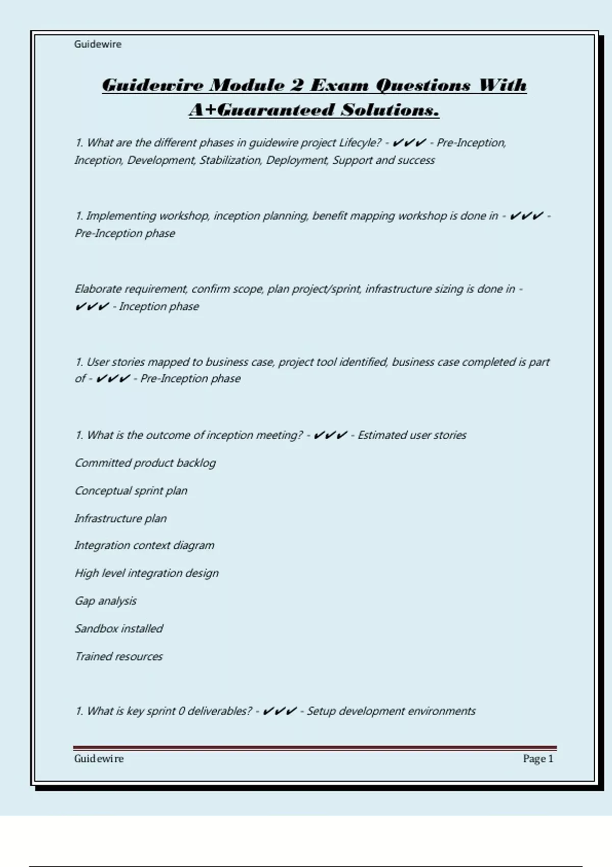 1. What are the different phases in guidewire project Lifecyle? - ✔✔✔ - Pre-Inception,