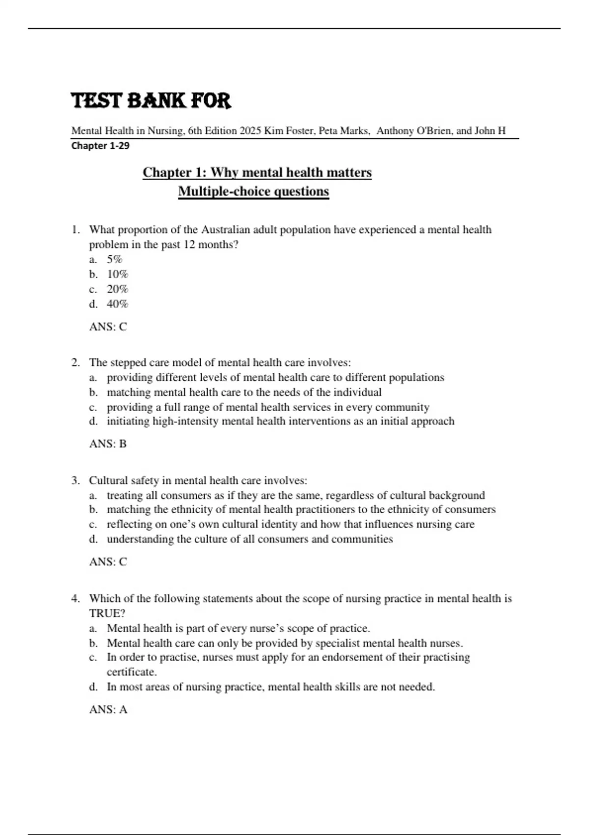 Mental Health in Nursing, 6th Edition 2025 Kim Foster, Peta Marks, Anthony O'Brien, and John H