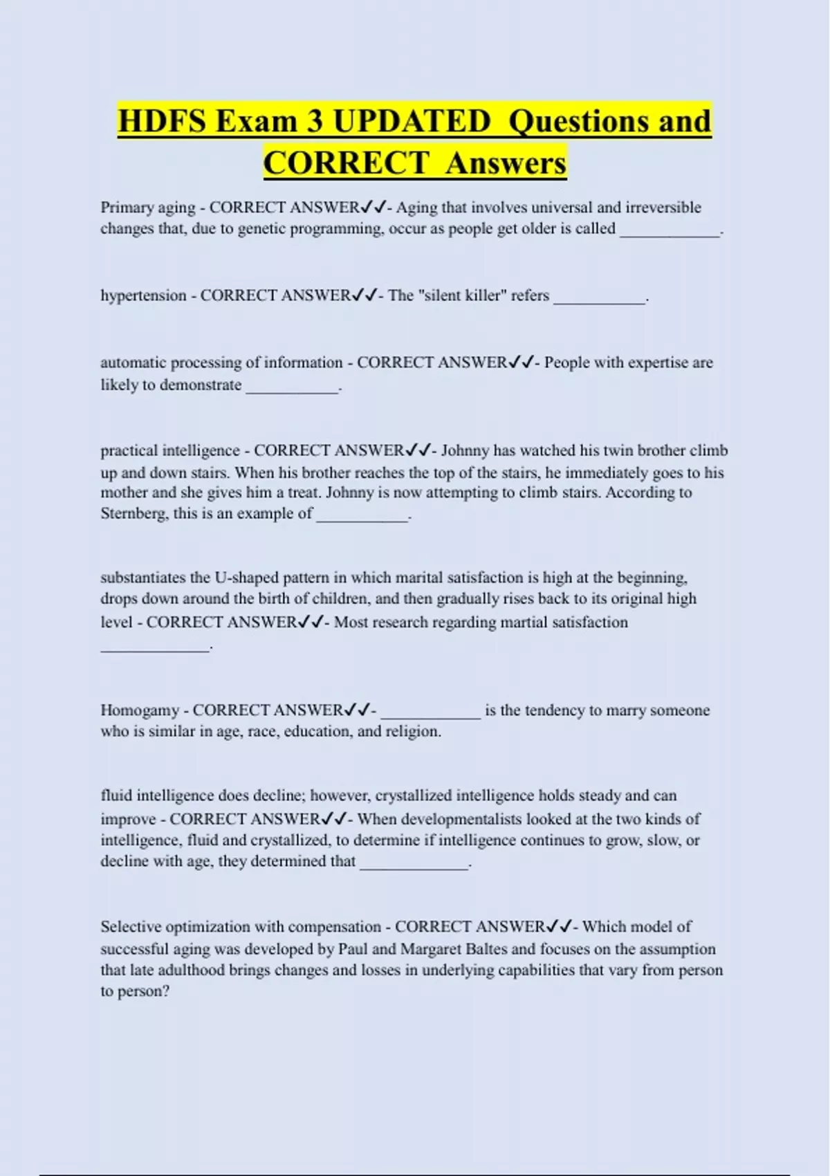 Primary aging - CORRECT ANSWER✔✔- Aging that involves universal and irreversible