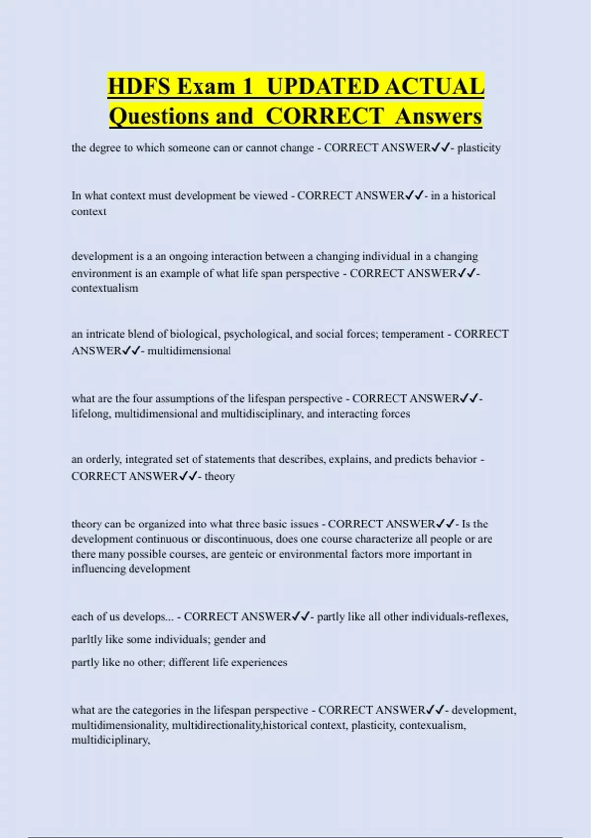 what are the four assumptions of the lifespan perspective - CORRECT ANSWER✔✔-
