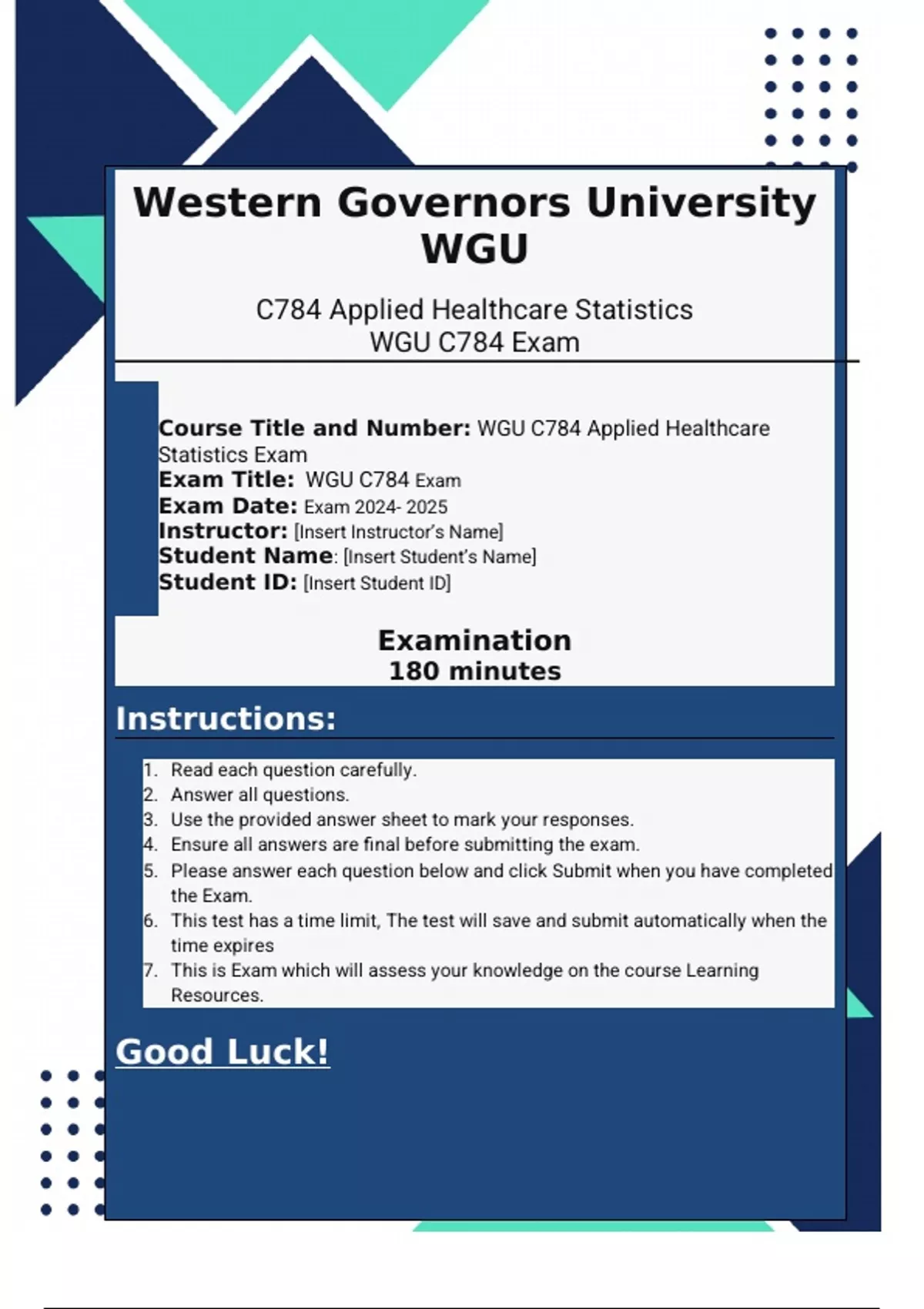 WGU C784 - APPLIED HEALTHCARE STATISTICS
