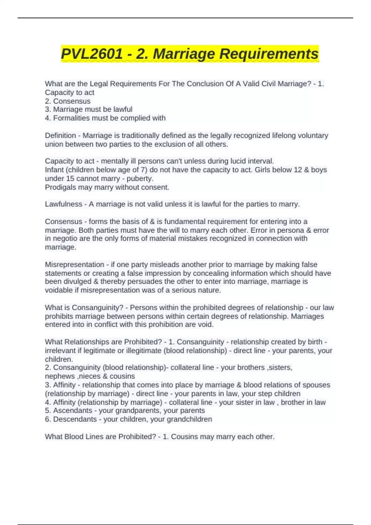 PVL2601 - 2. Marriage Requirements study guide