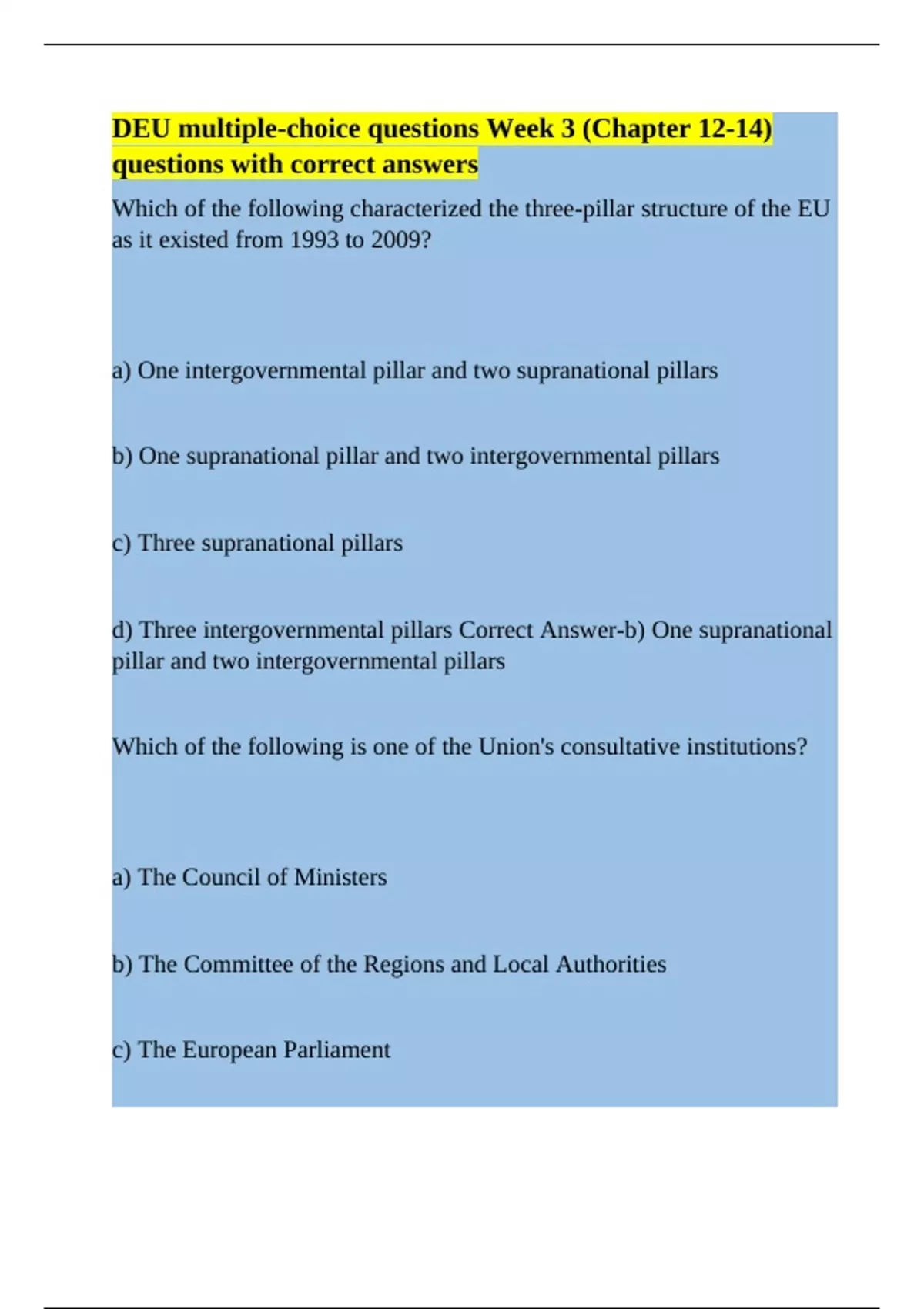 d) Three intergovernmental pillars Correct Answer-b) One supranational