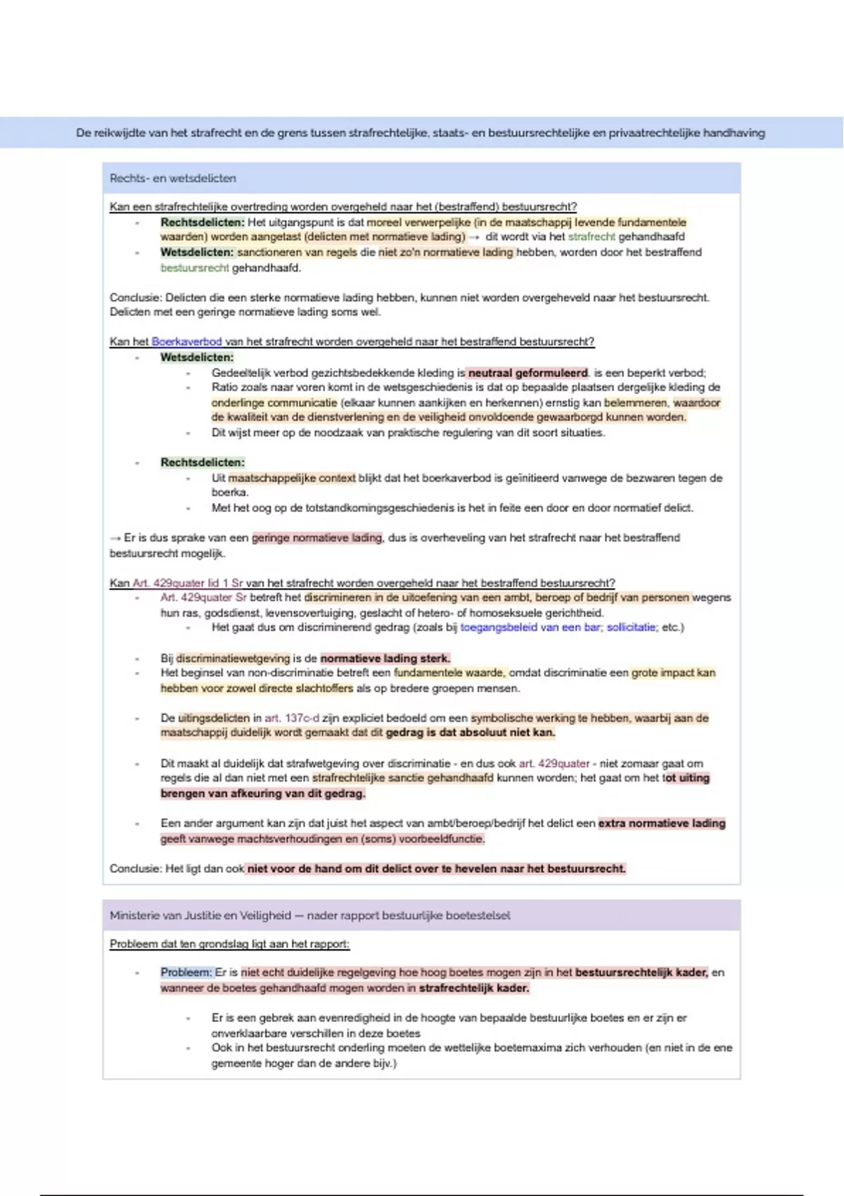 - Wetsdelicten: sanctioneren van regels die niet zo'n normatieve lading hebben, worden door het bestraffend