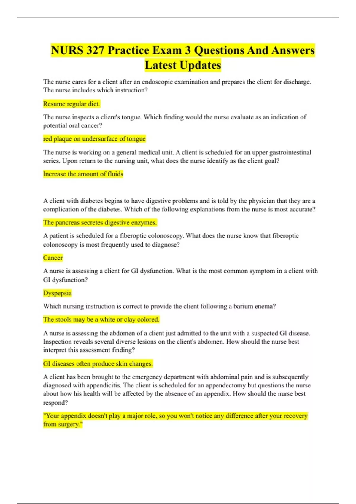 The nurse is working on a general medical unit. A client is scheduled for an upper gastrointestinal