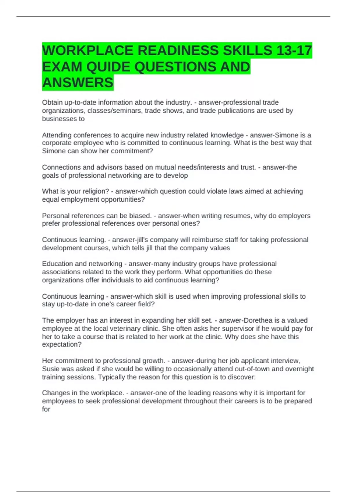 Changes in the workplace. - answer-one of the leading reasons why it is important for