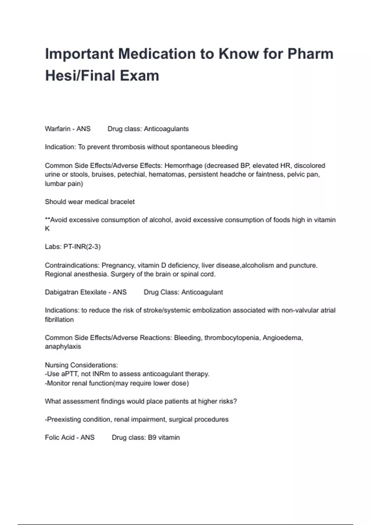 Dabigatran Etexilate - ANS Drug Class: Anticoagulant