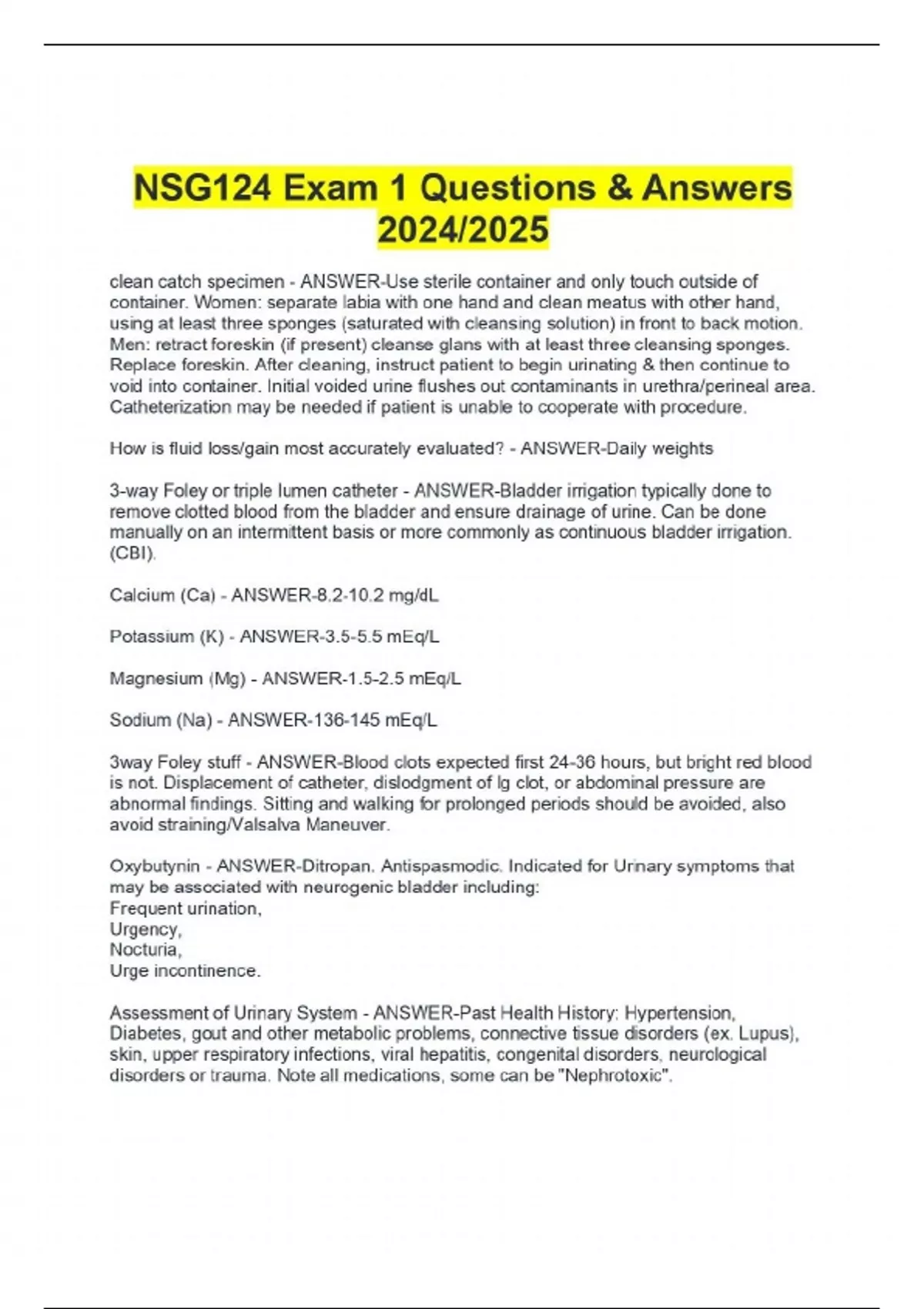 NSG124 Exam 1 Questions & Answers 2024/2025