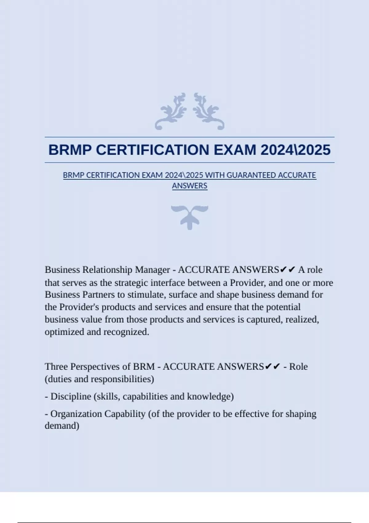 BRMP CERTIFICATION EXAM 2024\2025 WITH GUARANTEED ACCURATE