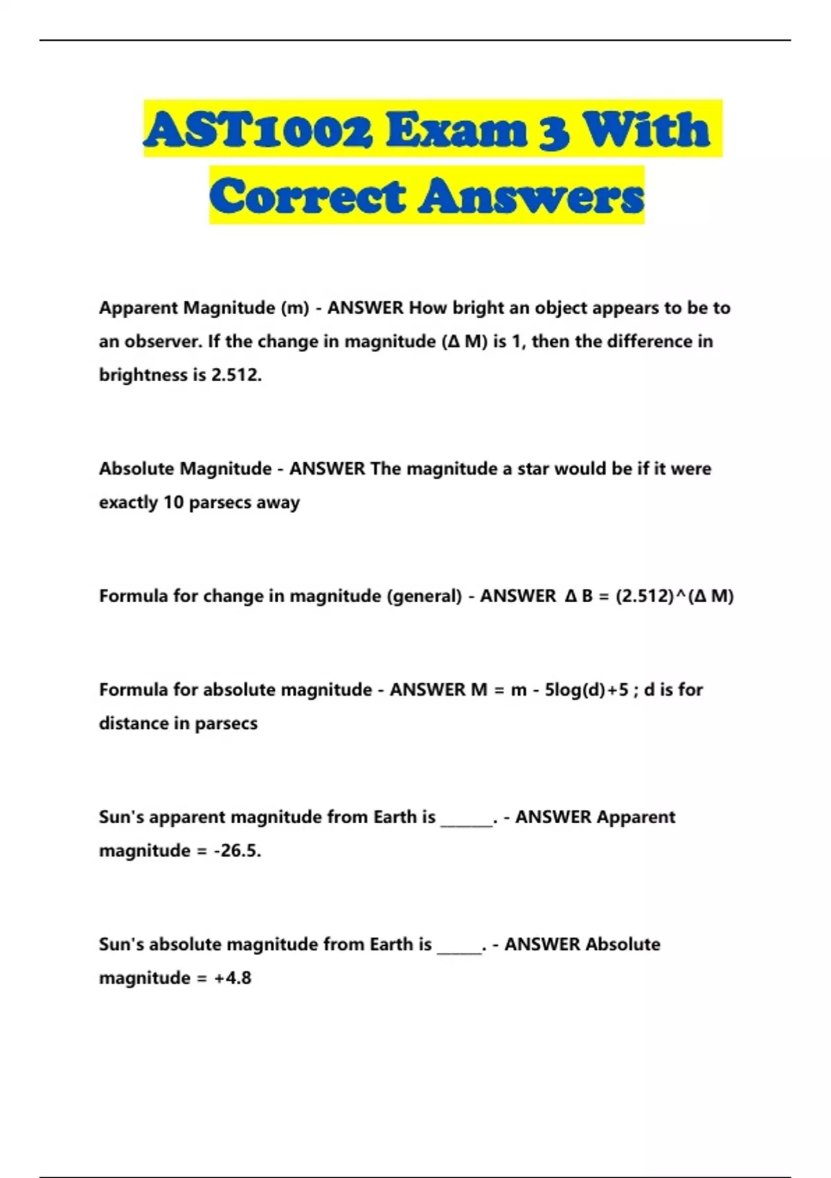 Absolute Magnitude - ANSWER The magnitude a star would be if it were