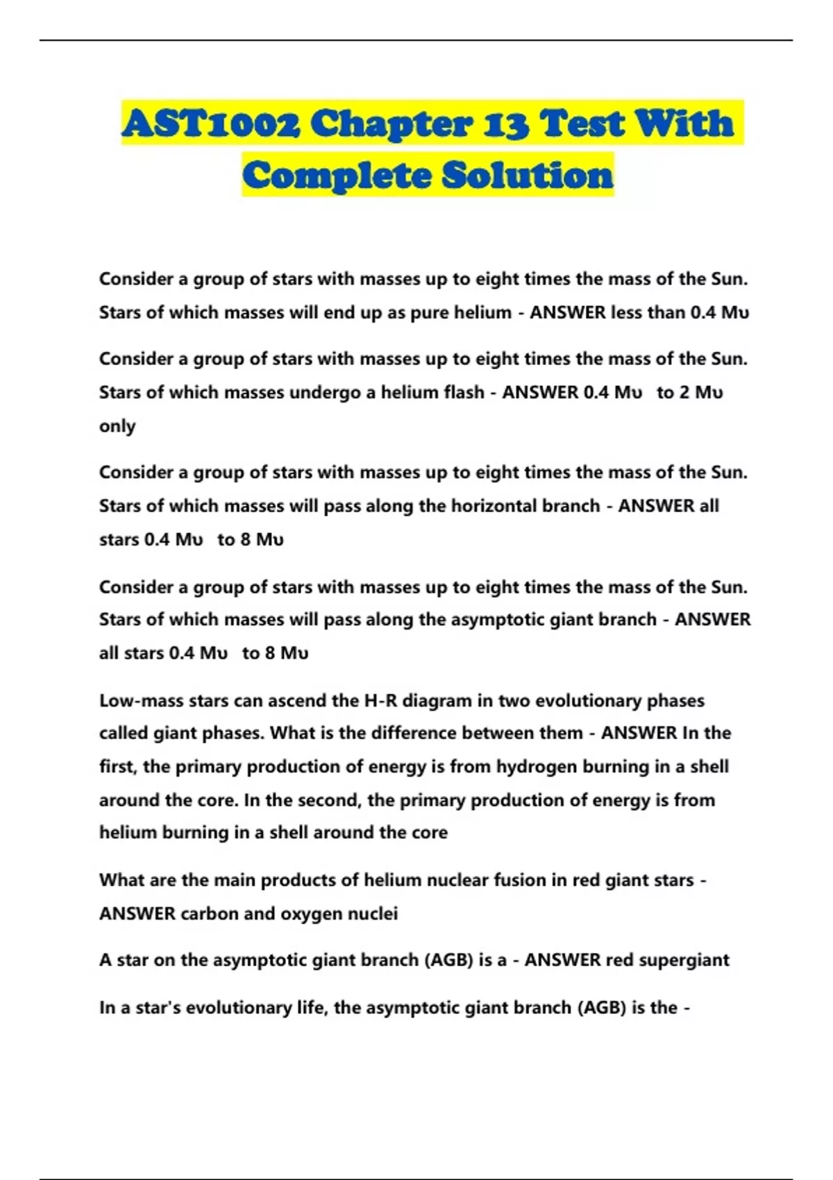 Stars of which masses will end up as pure helium - ANSWER less than 0.4 Mυ