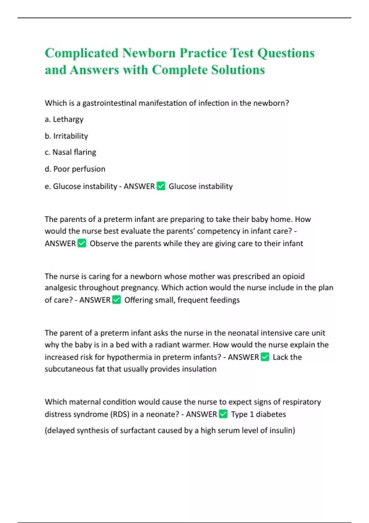 distress syndrome (RDS) in a neonate? - ANSWER Type 1 diabetes