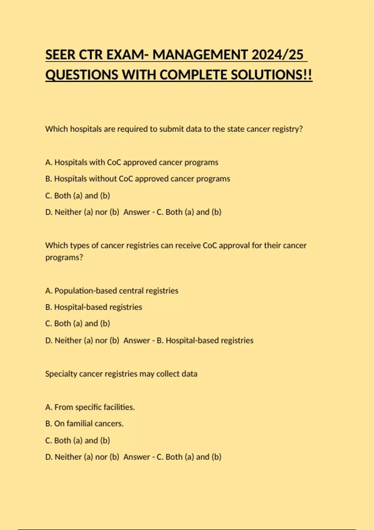 SEER CTR EXAM- MANAGEMENT 2024/25 QUESTIONS WITH COMPLETE SOLUTIONS!!