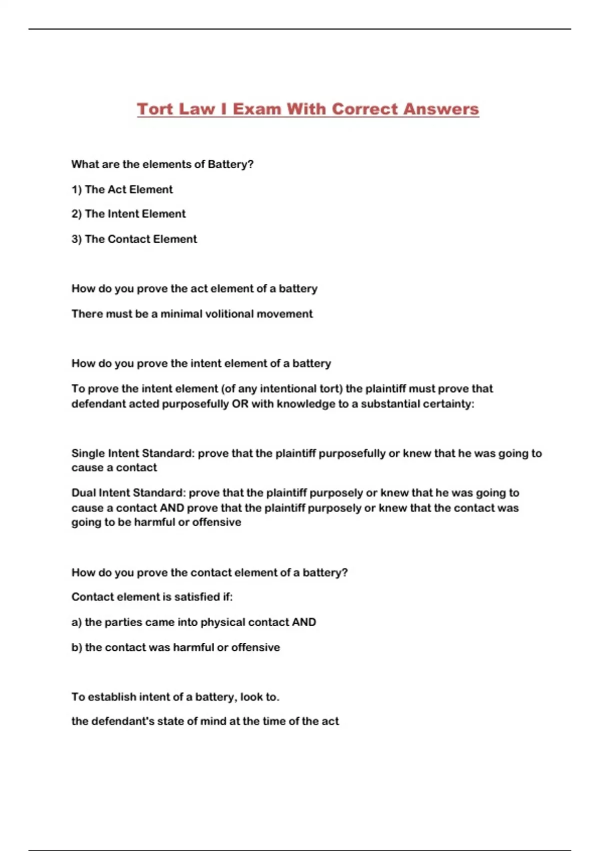 Tort Law I Exam With Correct Answers