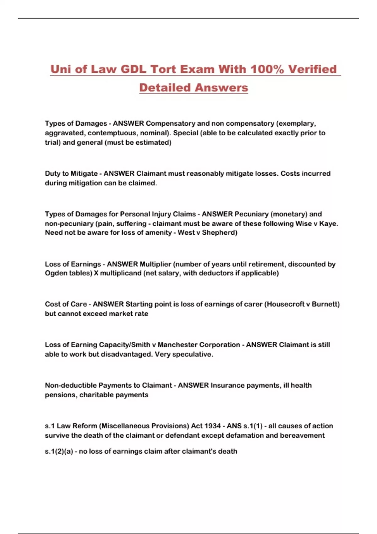 Uni of Law GDL Tort Exam With 100% Verified Detailed Answers...