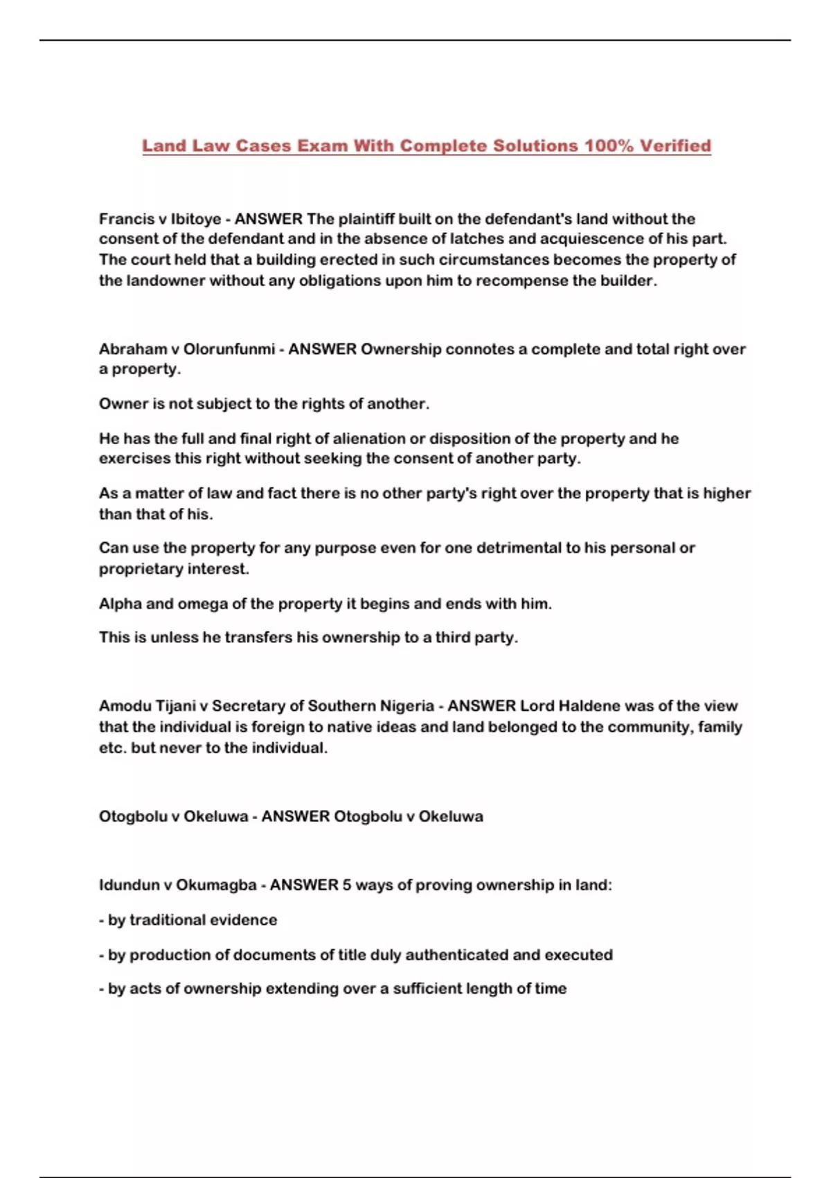 Land Law Cases Exam With Complete Solutions 100% Verified...