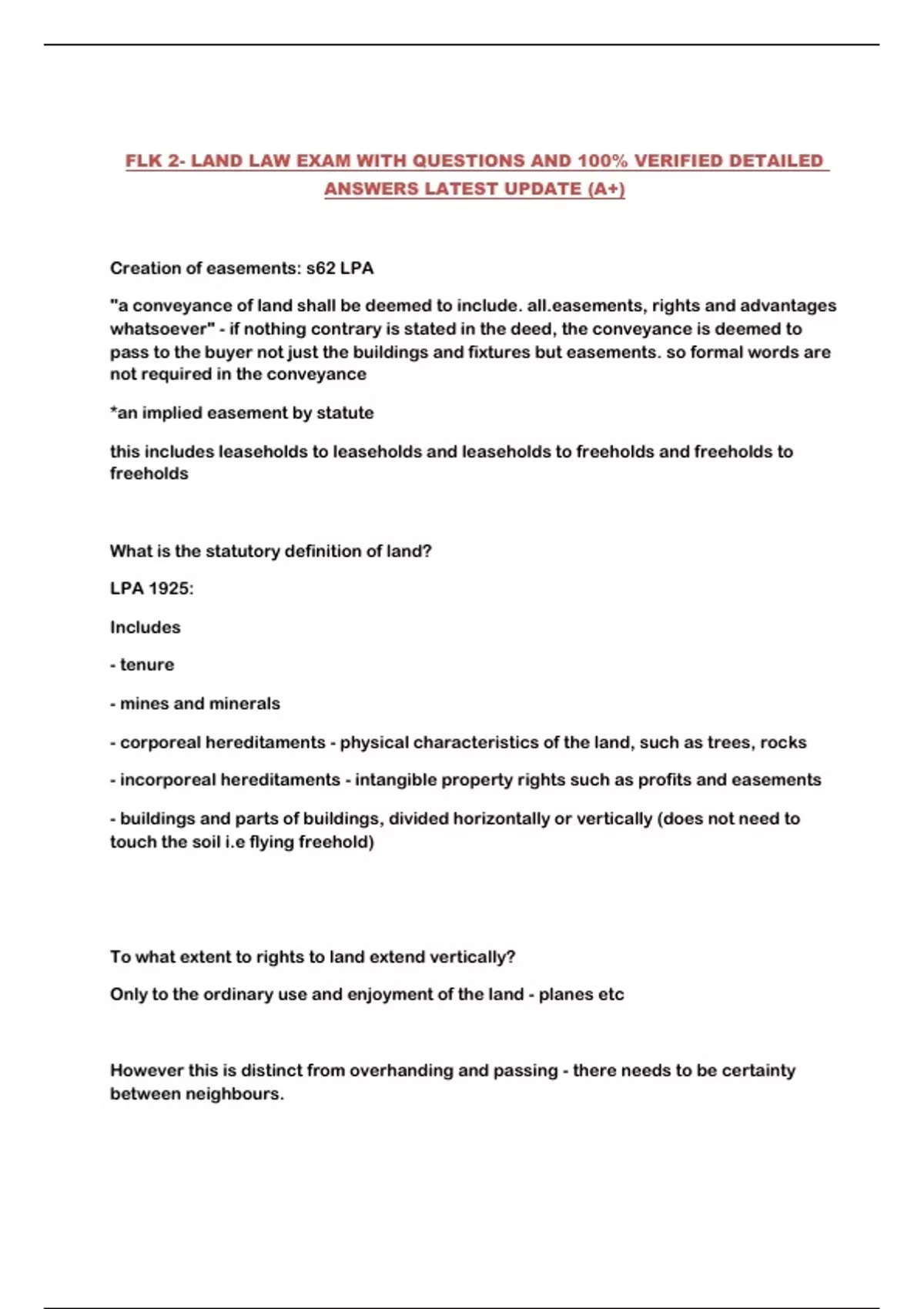 FLK 2- LAND LAW EXAM WITH QUESTIONS AND 100% VERIFIED DETAILED