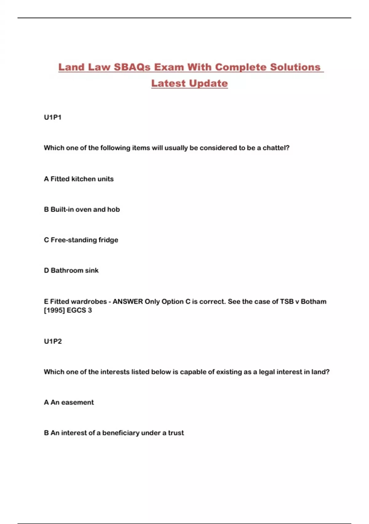 Land Law SBAQs Exam With Complete Solutions Latest Update...