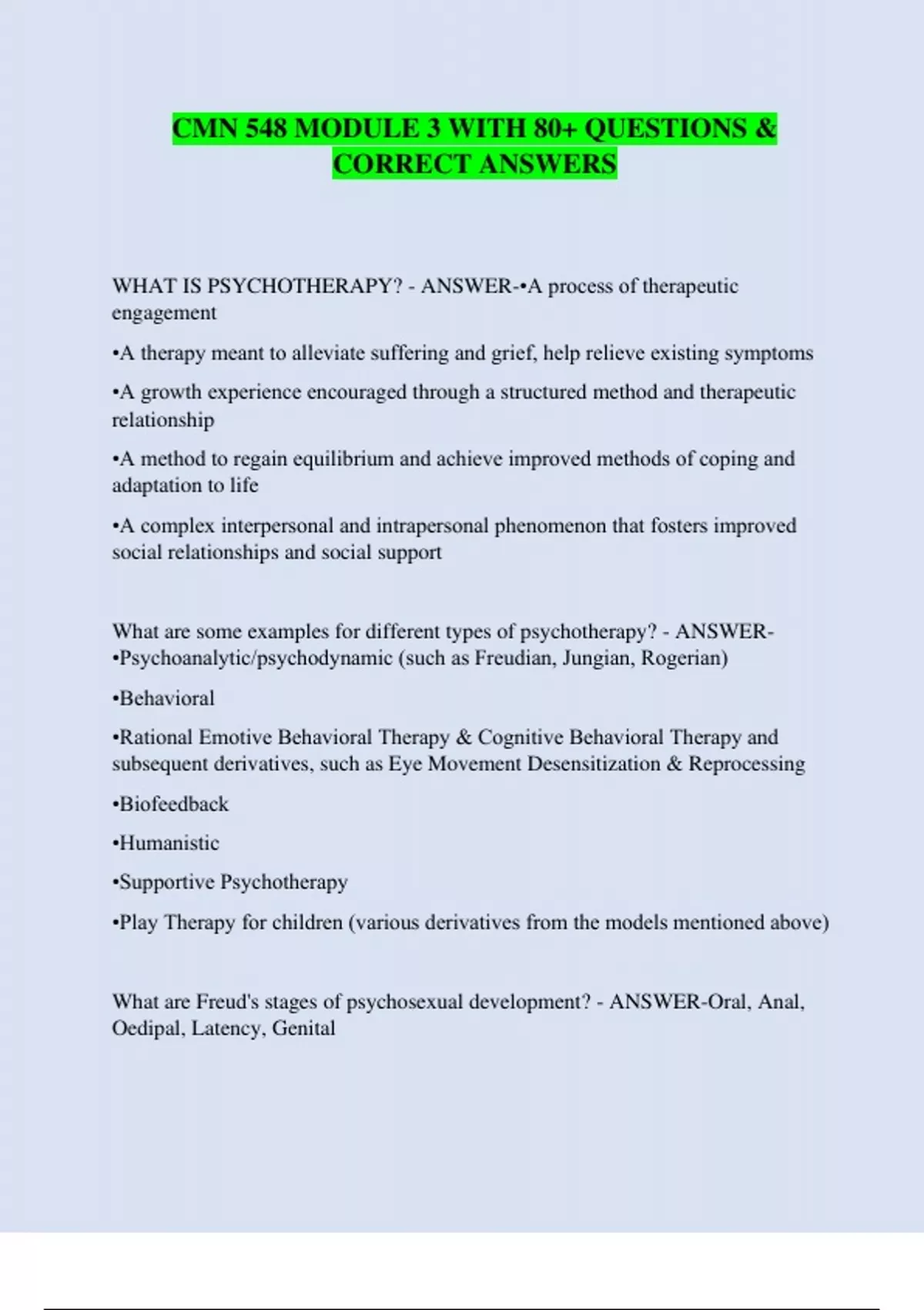 CMN 548 MODULE 3 WITH 80+ QUESTIONS & CORRECT ANSWERS CMN 548 MODULE 3 WITH 80+ QUESTIONS & CORRECT ANSWERS