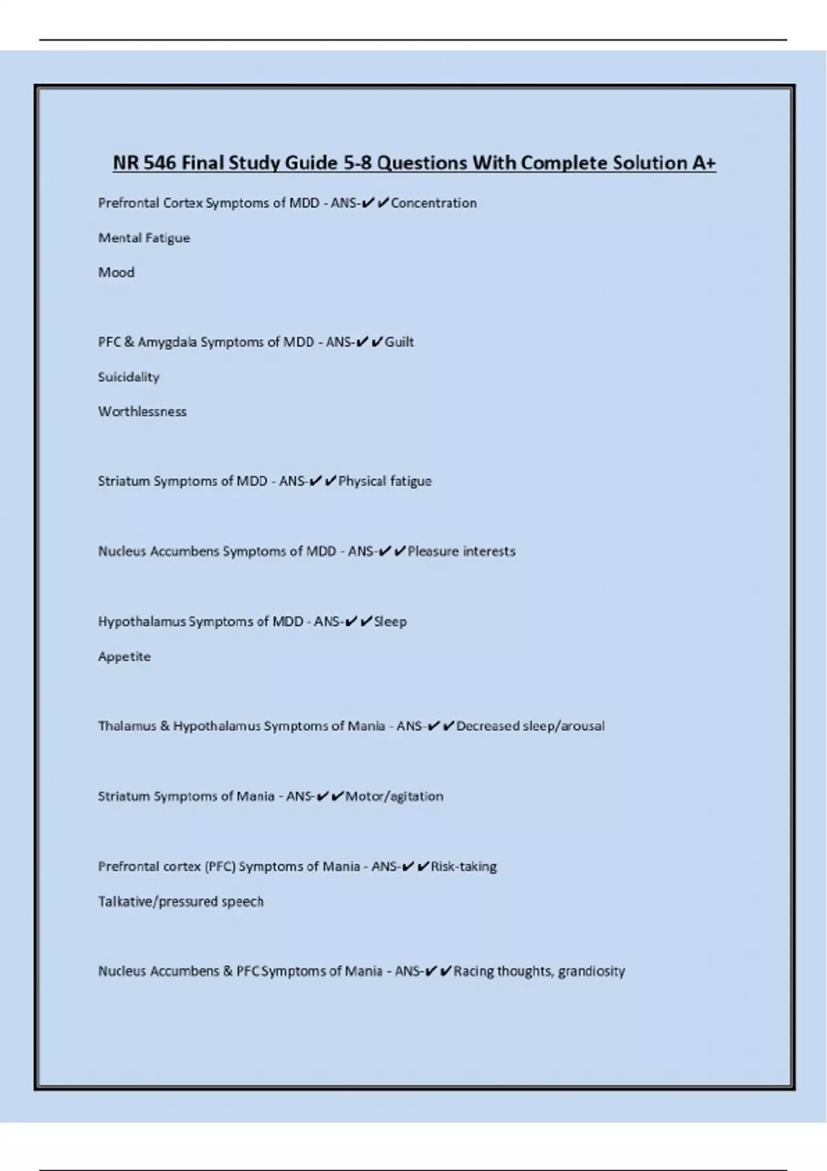 NR 546 Final Study Guide 5-8 Questions With Complete Solution A+