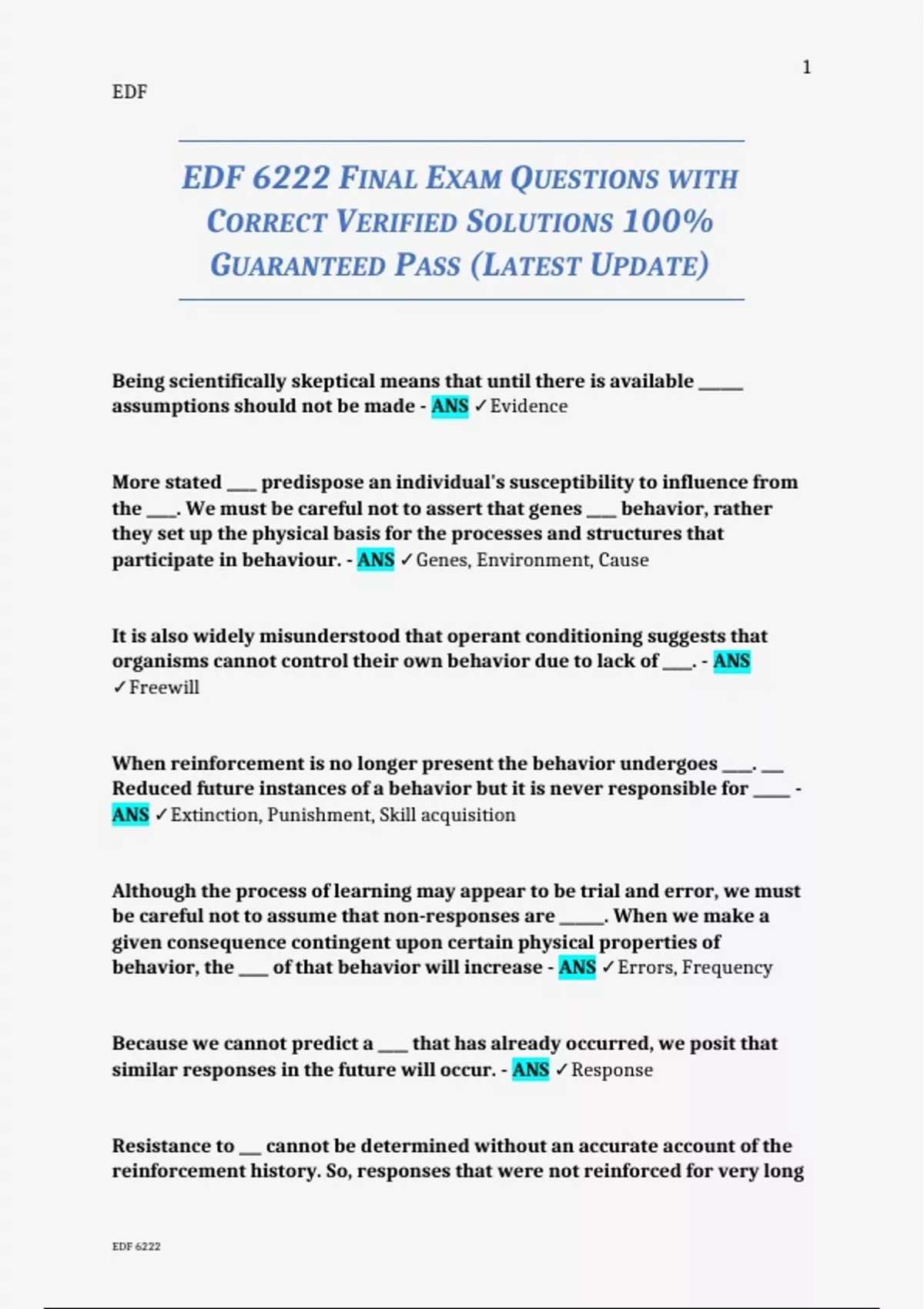 EDF 6222 FINAL EXAM QUESTIONS WITH