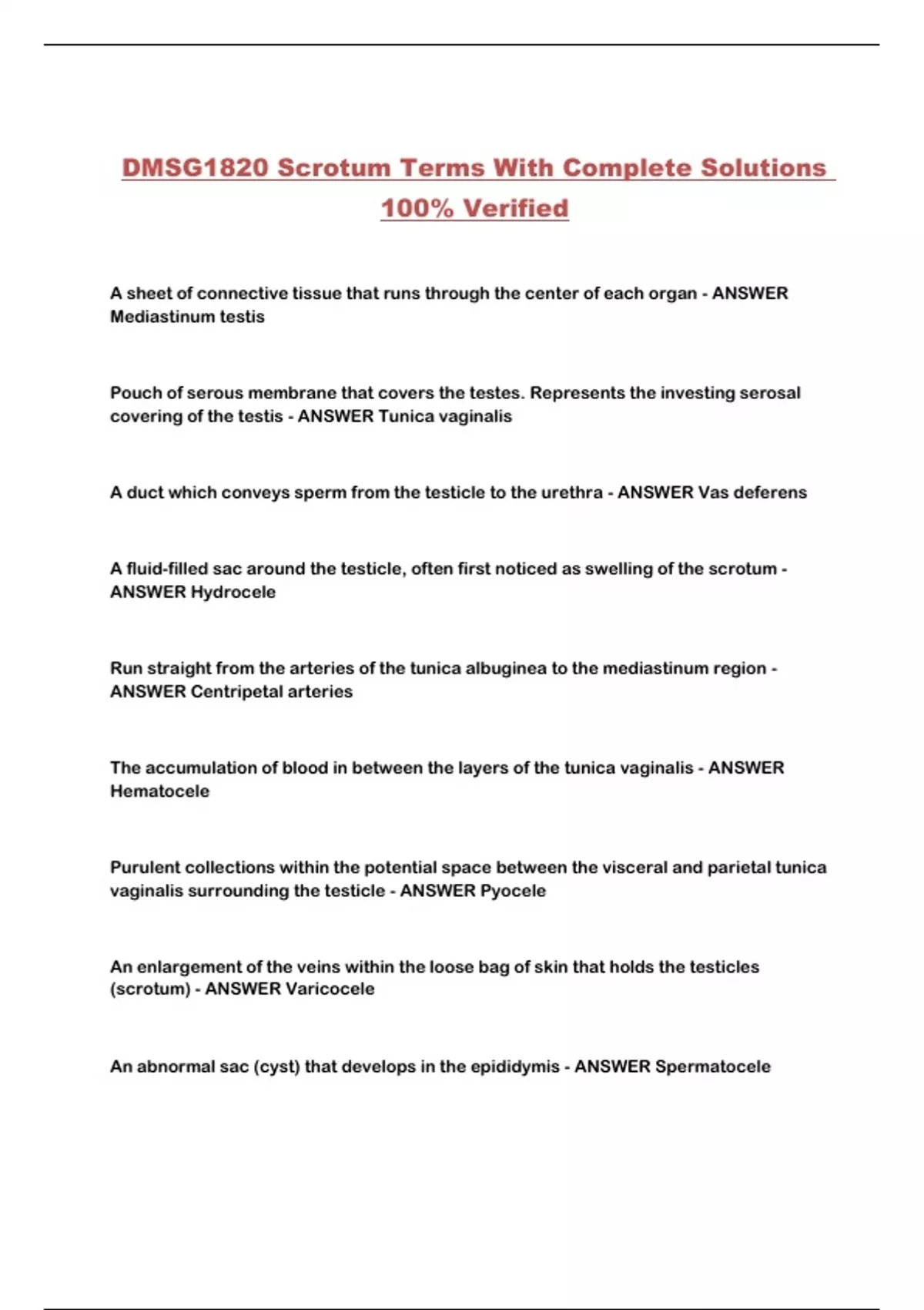 DMSG1820 Scrotum Terms With Complete Solutions