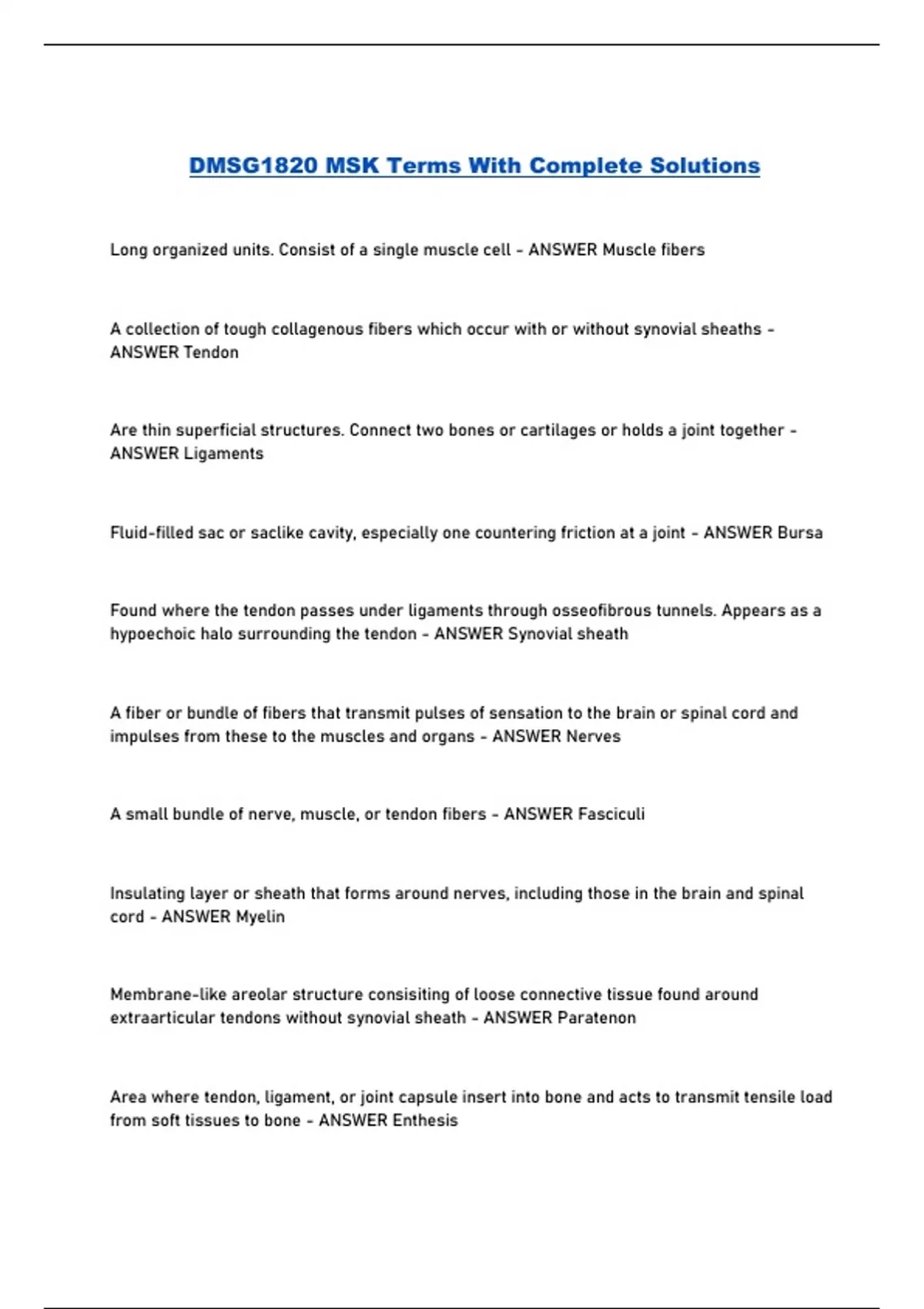 A small bundle of nerve, muscle, or tendon fibers - ANSWER Fasciculi