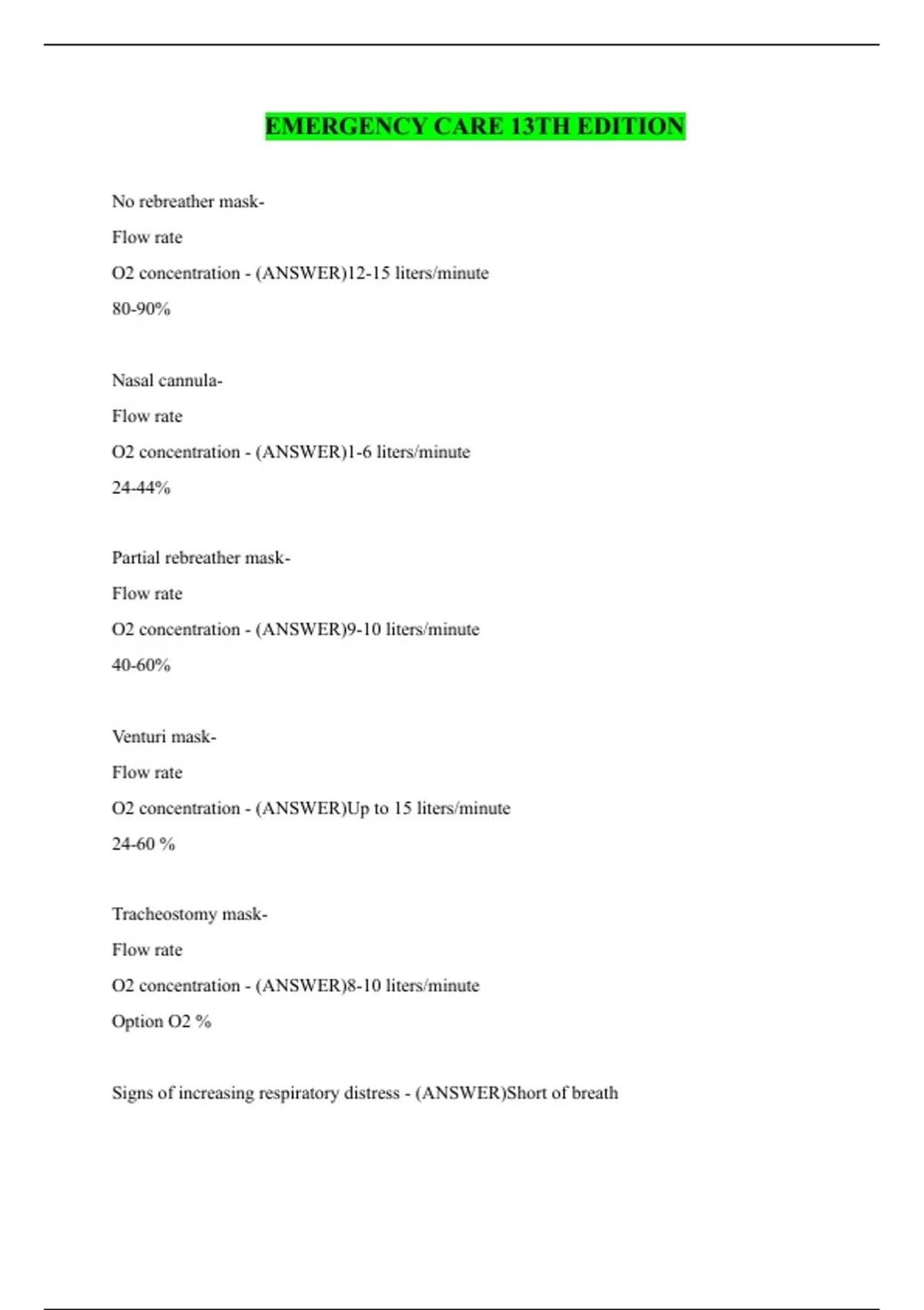 O2 concentration - (ANSWER)Up to 15 liters/minute