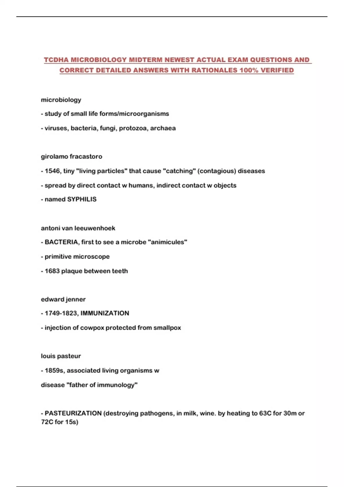 TCDHA MICROBIOLOGY MIDTERM NEWEST ACTUAL EXAM QUESTIONS AND
