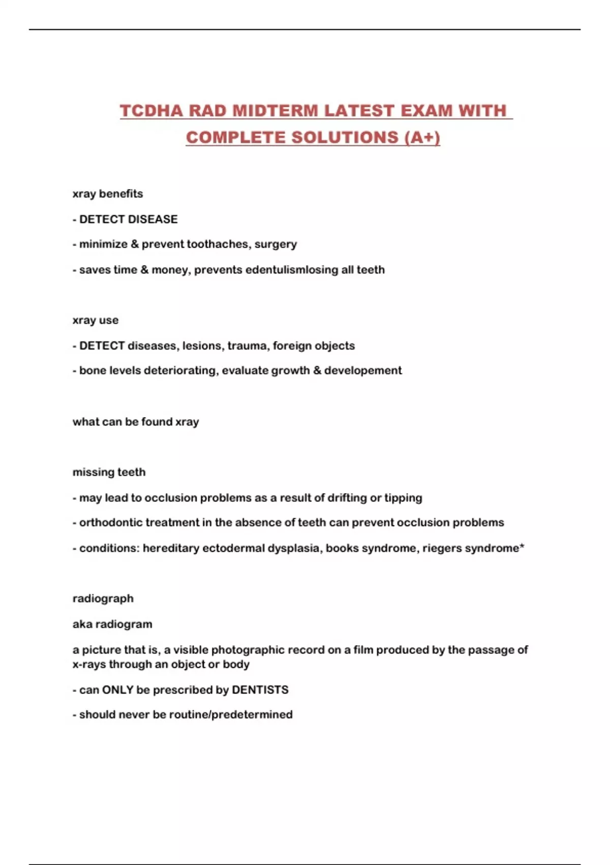 TCDHA RAD MIDTERM LATEST EXAM WITH COMPLETE SOLUTIONS (A+)...