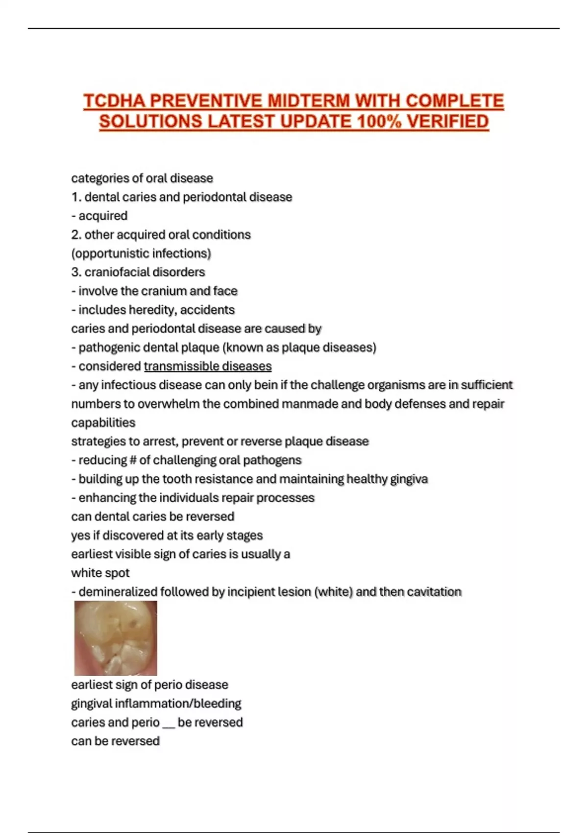 TCDHA PREVENTIVE MIDTERM WITH COMPLETE SOLUTIONS LATEST UPDATE 100% VERIFIED
