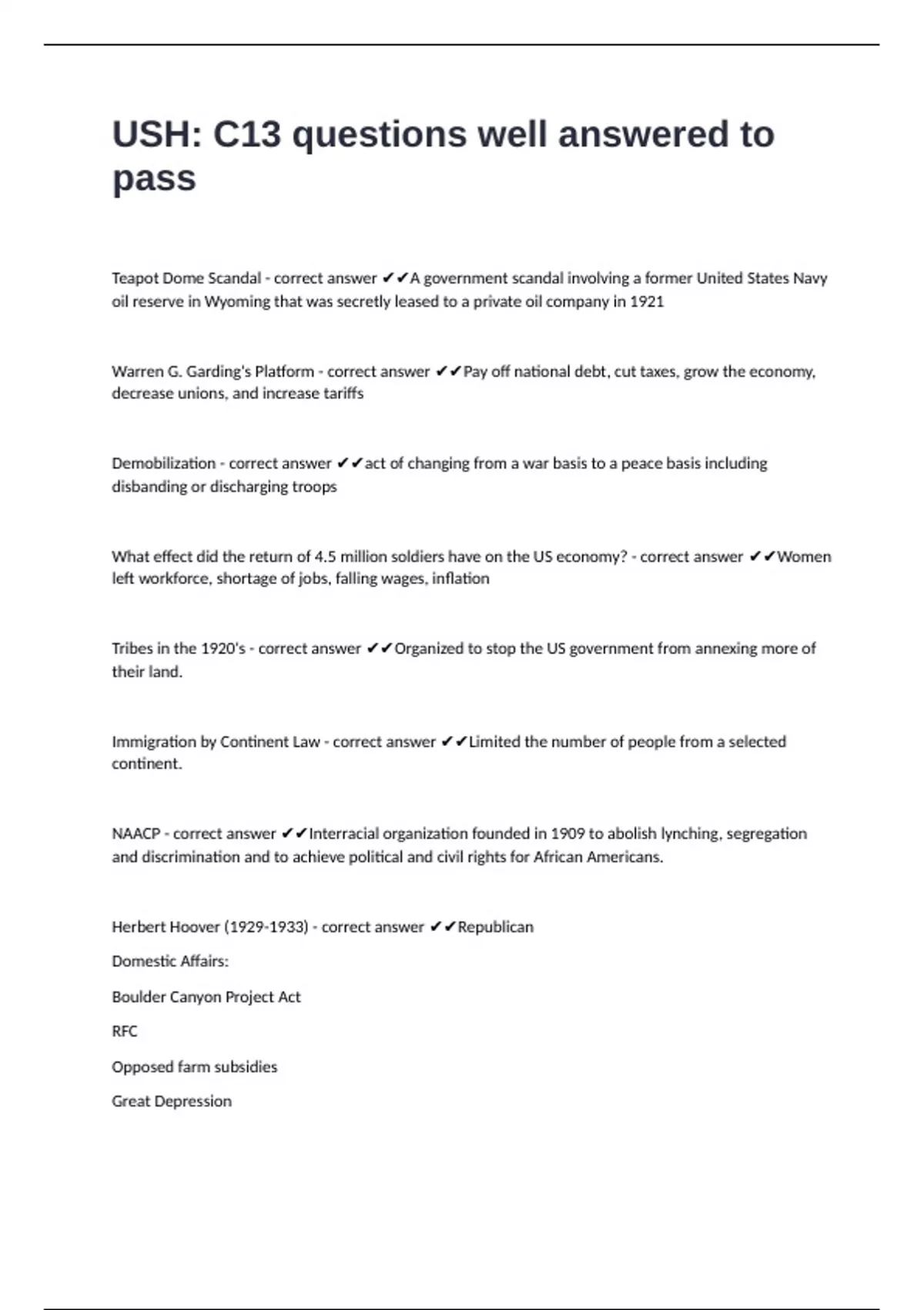 Warren G. Garding's Platform - correct answer ✔✔Pay off national debt, cut taxes, grow the economy,