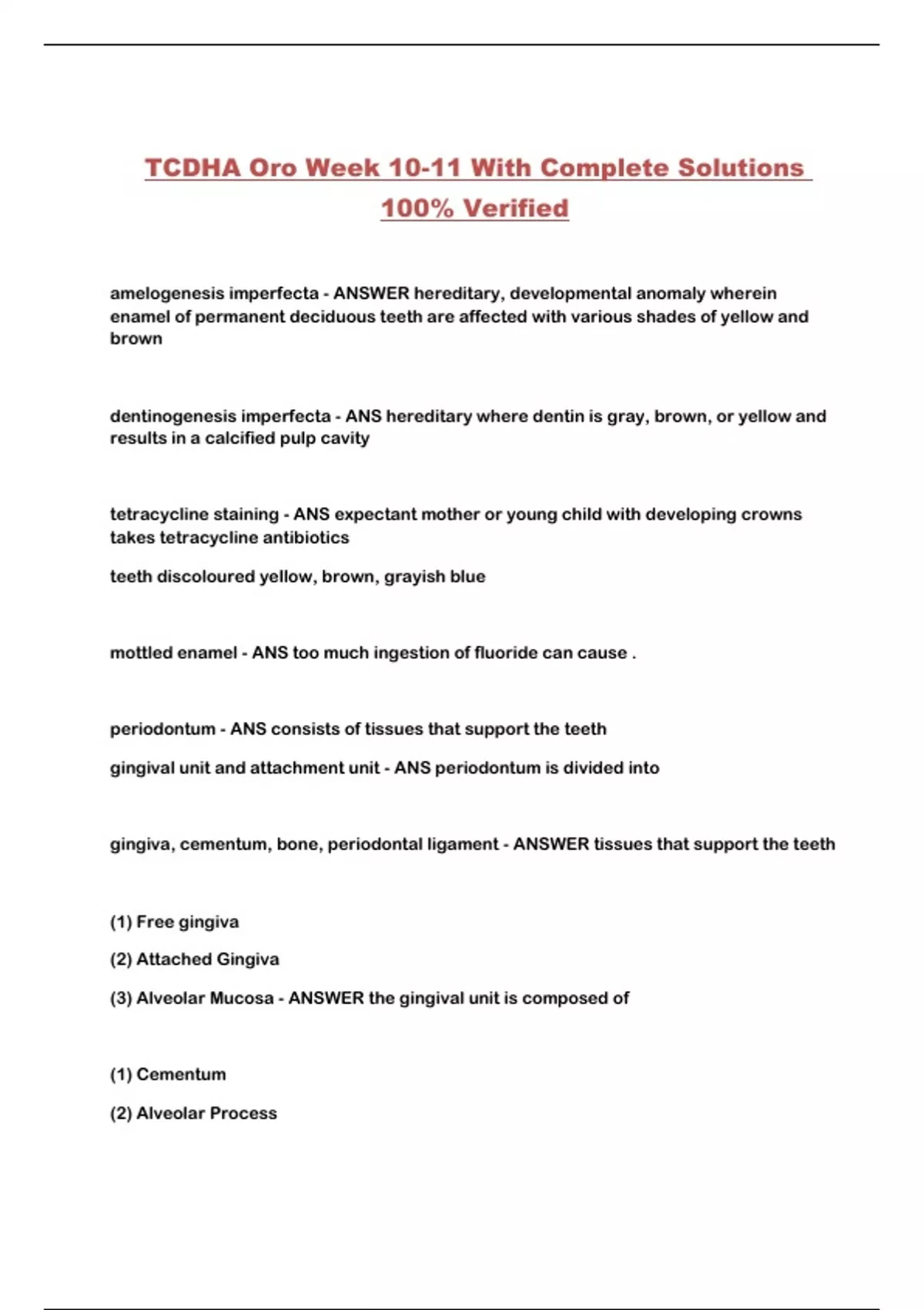 TCDHA Oro Week 10-11 With Complete Solutions 100% Verified...