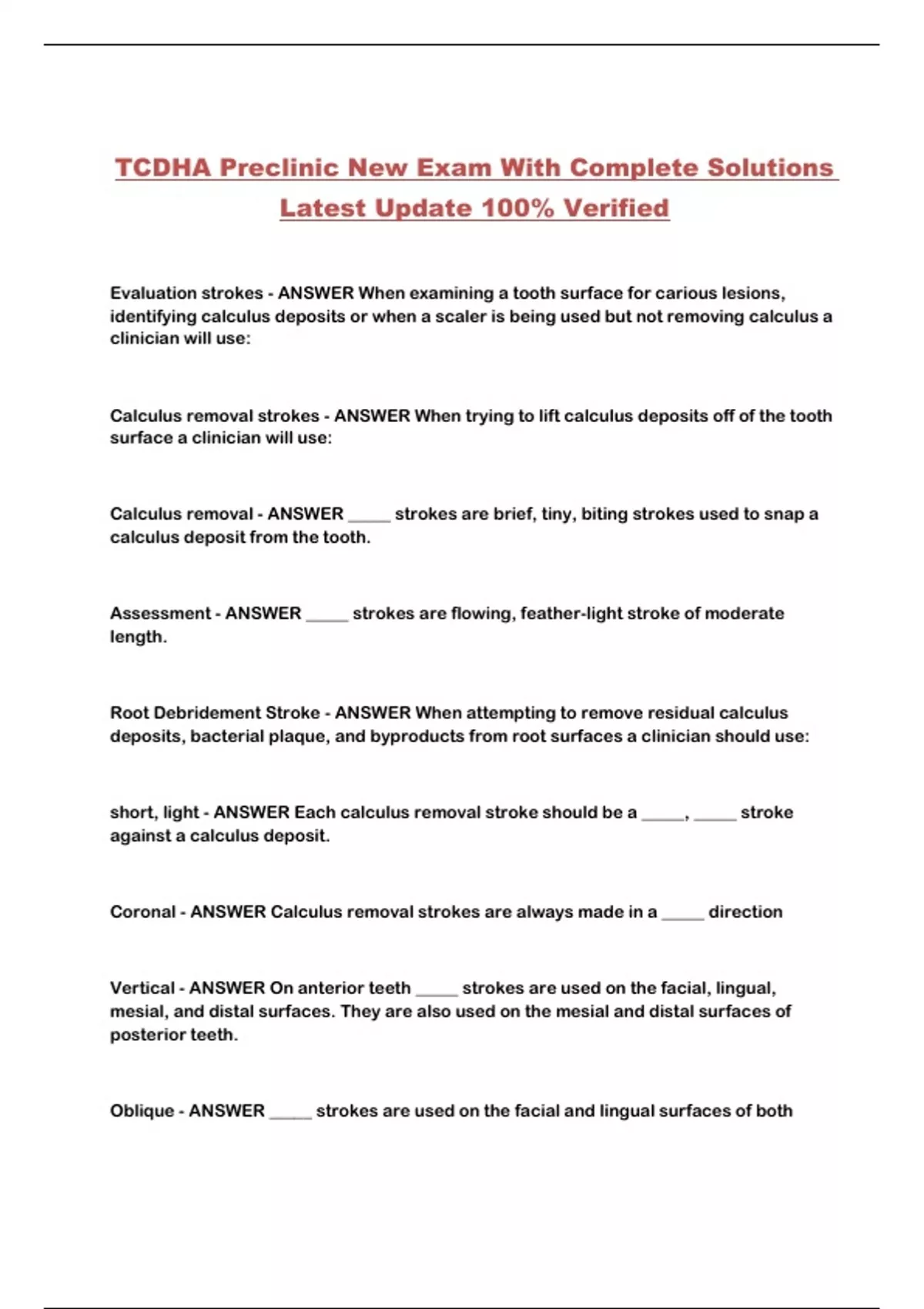 TCDHA Preclinic New Exam With Complete Solutions Latest Update 100% Verified...