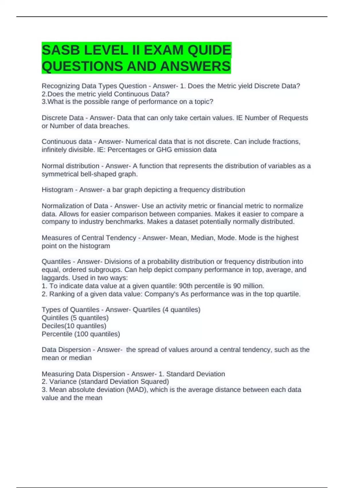 SASB LEVEL II EXAM QUIDE QUESTIONS AND ANSWERS