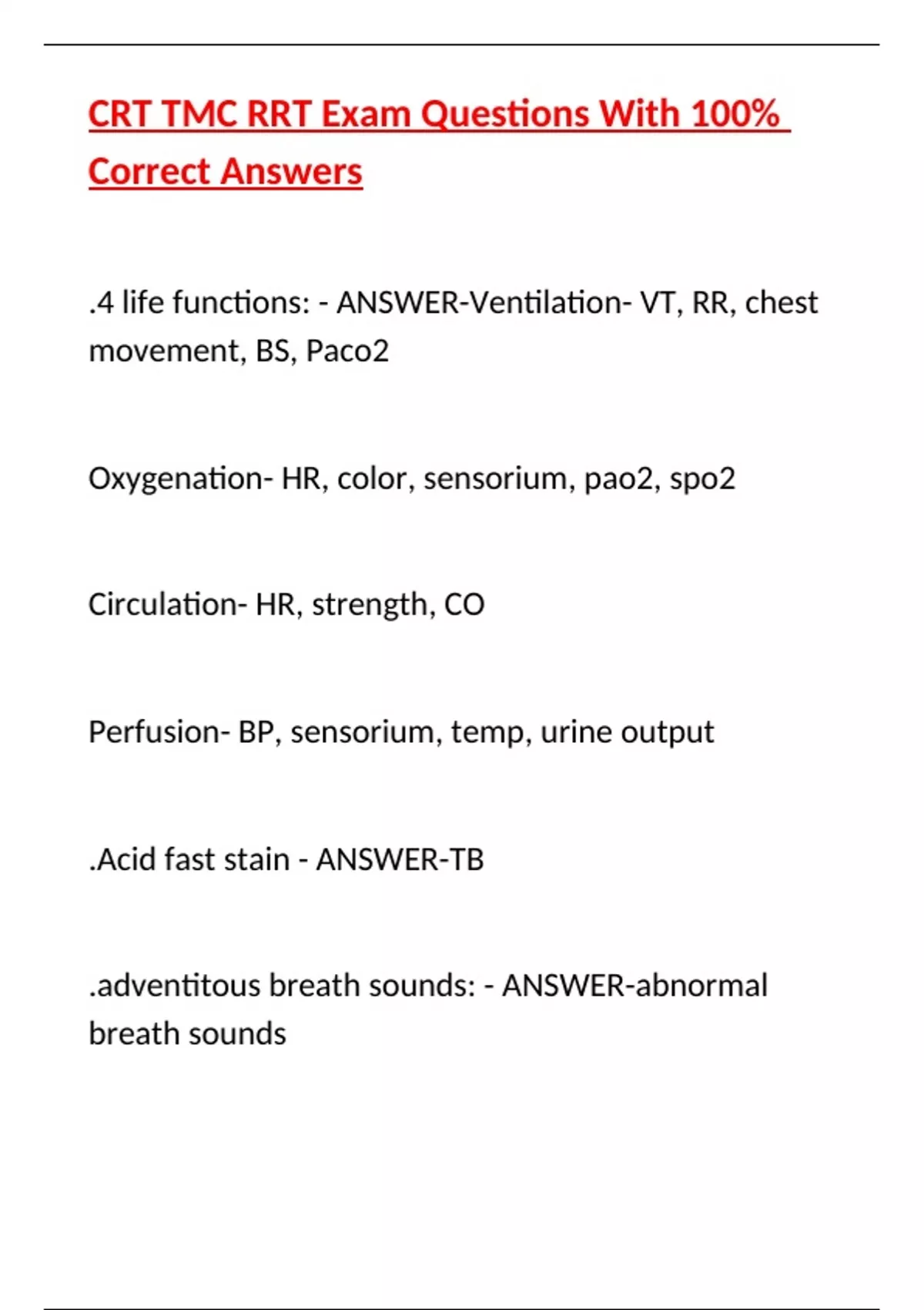 .4 life functions: - ANSWER-Ventilation- VT, RR, chest